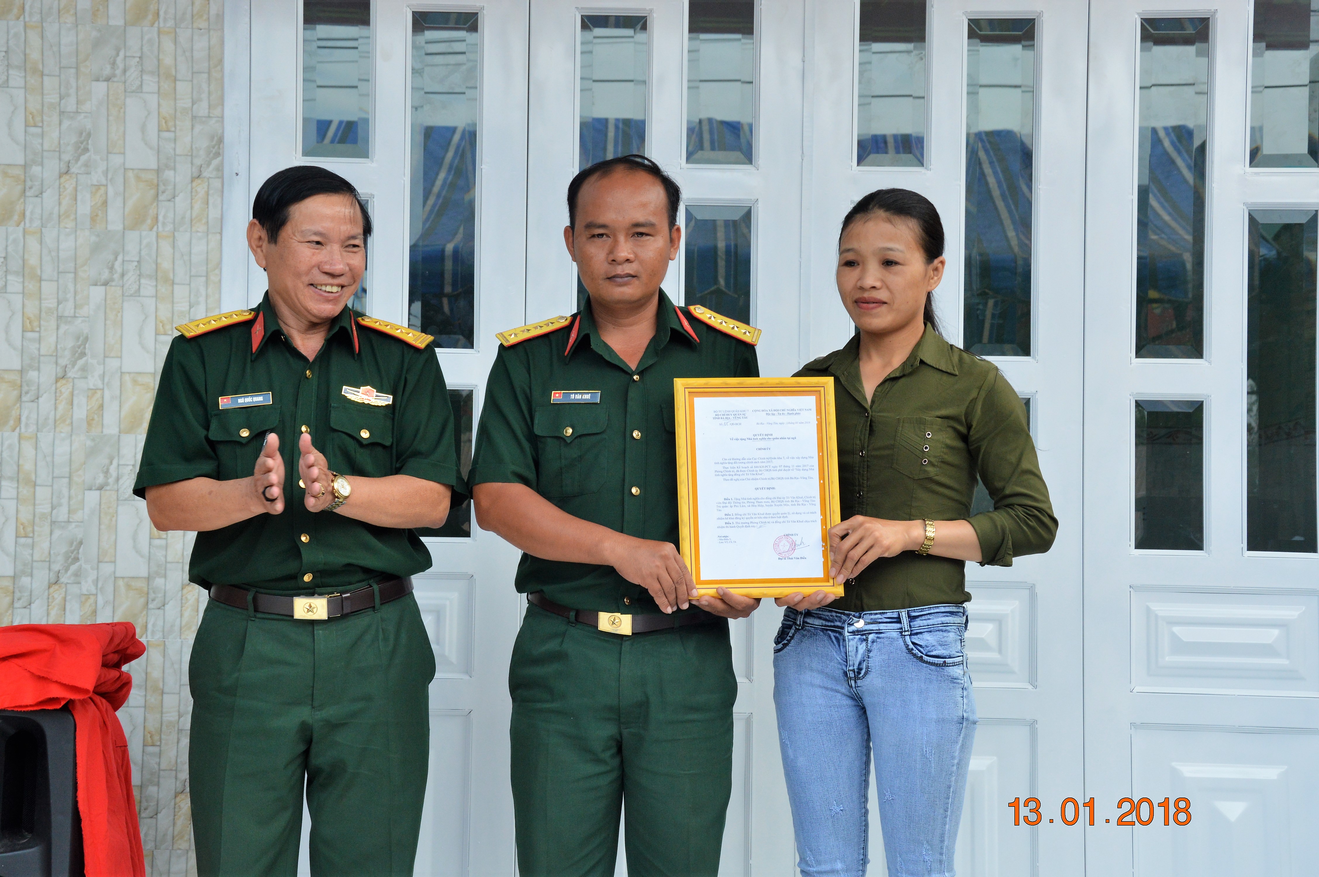 Ngôi nhà ấm tình đồng đội, tình quân dân được trao cho Đại úy Tô văn Khuê, ấp Phú Lâm, xã Hòa Hiệp, huyện Xuyên Mộc, là Chính trị viên Đại đội Thông tin, Phòng Tham mưu, Bộ CHQS tỉnh với tổng trị giá xây dựng gần 200 triệu đồng, trong đó, số tiền Bộ CHQS tỉnh hỗ trợ 120 triệu đồng. Ngôi nhà cấp 4, diện tích 69m2 rất khang trang gồm 1 phòng khách, 2 phòng ngủ, có công trình phụ gồm nhà bếp và nhà vệ sinh sạch đẹp là cả mơ ước của người lính thông tin đã có hơn 10 năm công tác trong LLVT tỉnh.