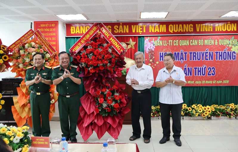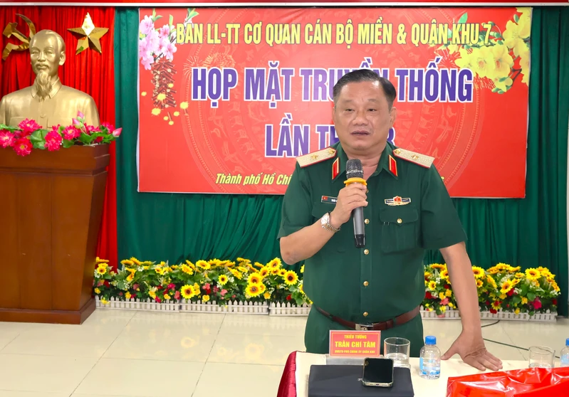 (QK7 Online) – Ngày 28/2, Ban liên lạc truyền thống Cơ quan Cán bộ Miền và Quân khu 7 tổ chức họp mặt truyền thống lần thứ 23. Dự buổi họp mặt có Thiếu tướng Trần Chí Tâm, Phó Chính ủy Quân khu 7; Đại tá Nguyễn Như Trúc, Phó Chủ nhiệm Chính trị Quân khu; Thiếu tướng Nguyễn Thành Trung, Chính ủy Bộ Tư lệnh TP. Hồ Chí Minh cùng các đồng chí nguyên là cán bộ các Cơ quan Cán bộ Miền và Quân khu 7 qua các thời kỳ.