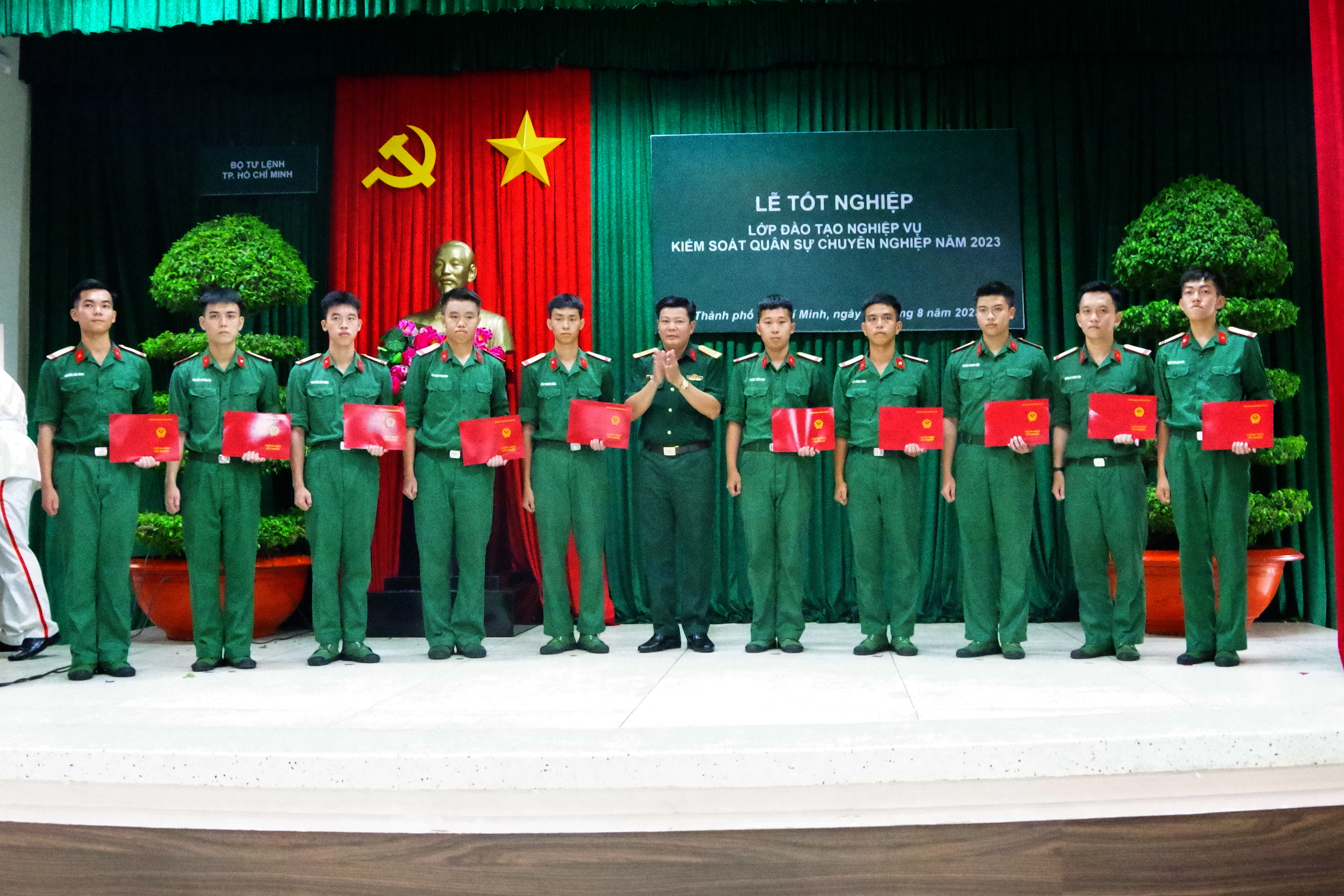 (QK7 Online) - Sáng 28/8 Trường Quân sự Quân khu phối hợp với Bộ Tư lệnh Thành phố Hồ Chí Minh tổ chức Lễ tốt nghiệp lớp đào tạo nghiệp vụ nghiệp vụ kiểm soát quân sự chuyên nghiệp năm 2023. Đến dự có Thượng tá Nguyễn Văn Hậu, Phó Tham mưu trưởng Bộ Tư lệnh Thành phố Hồ Chí Minh.