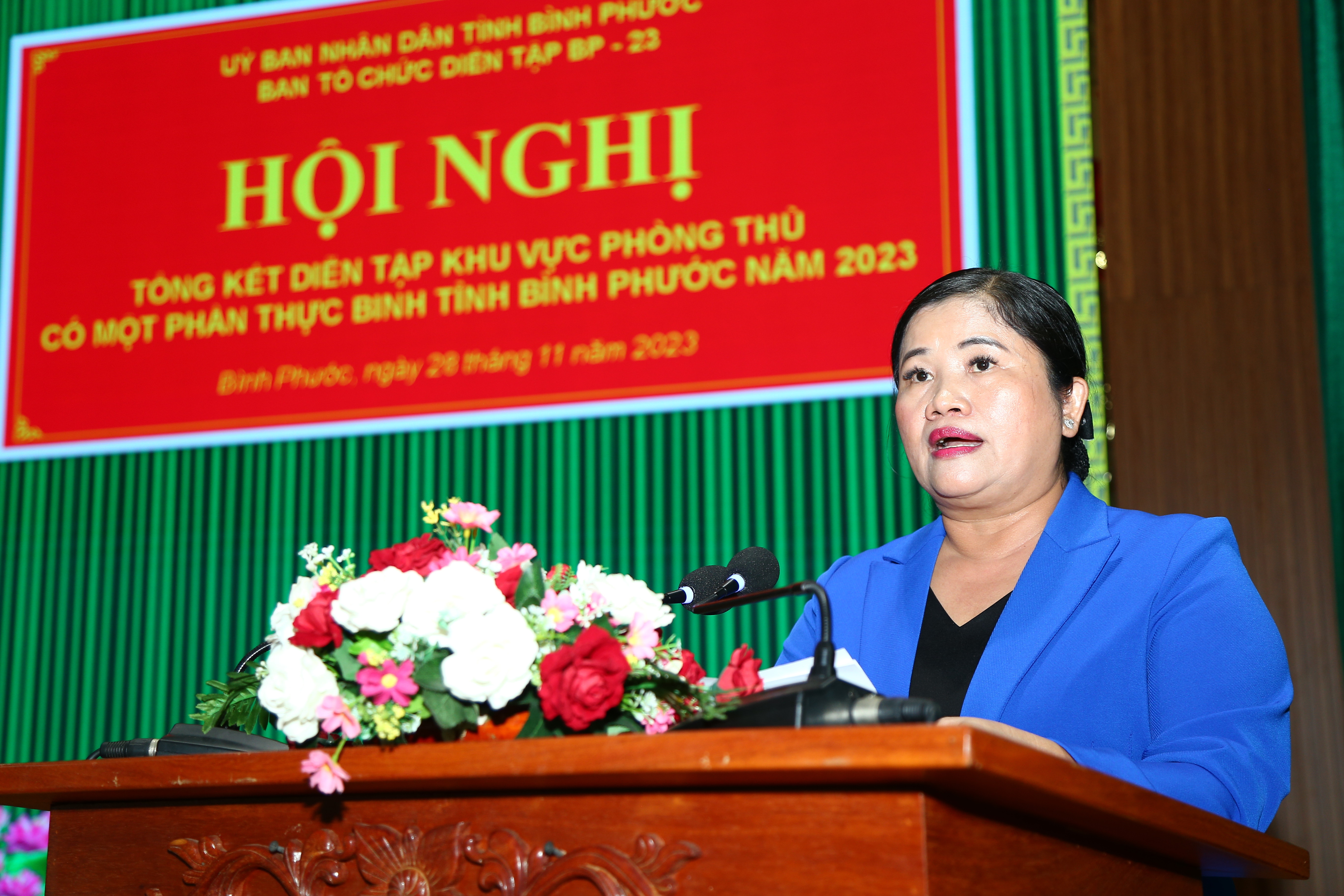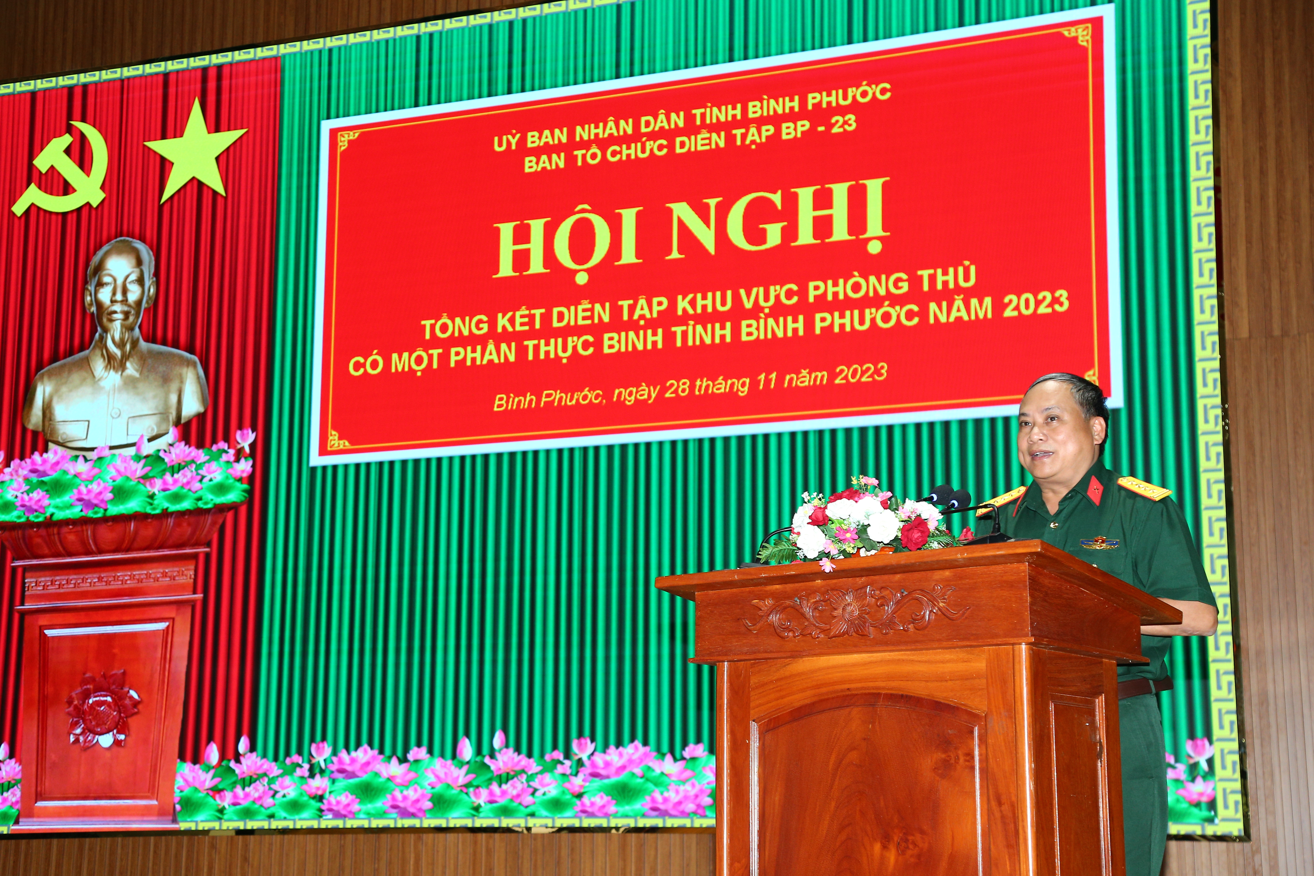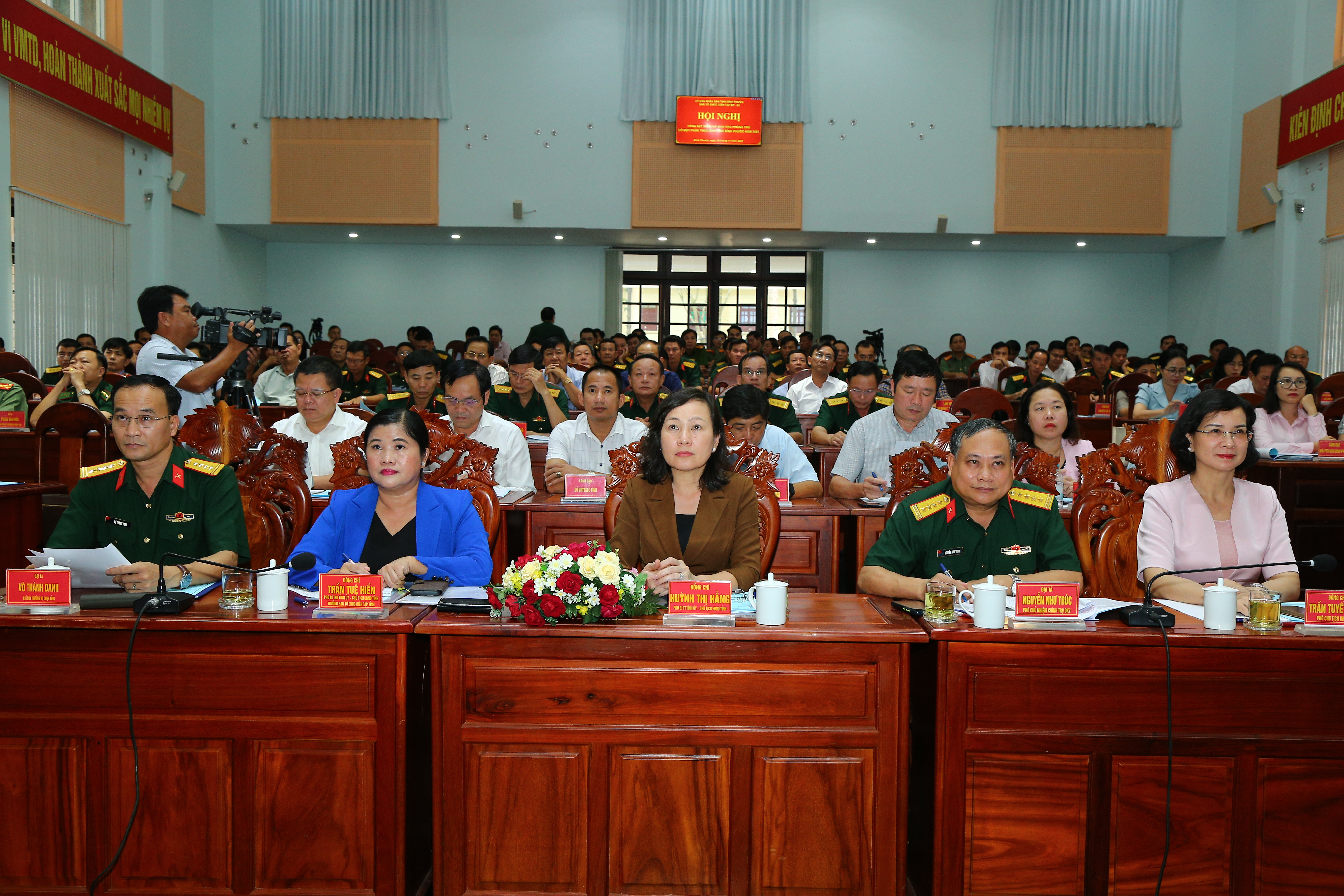 (QK7 Online) - Chiều 28/11, tại Bộ CHQS tỉnh Bình Phước, UBND tỉnh tổ chức hội nghị tổng kết diễn tập khu vực phòng thủ (KVPT) tỉnh có một phần thực binh năm 2023. Đồng chí Trần Tuệ Hiền, Phó Bí thư Tỉnh ủy, Chủ tịch UBND tỉnh, Trưởng Ban Tổ chức diễn tập tỉnh chủ trì hội nghị.