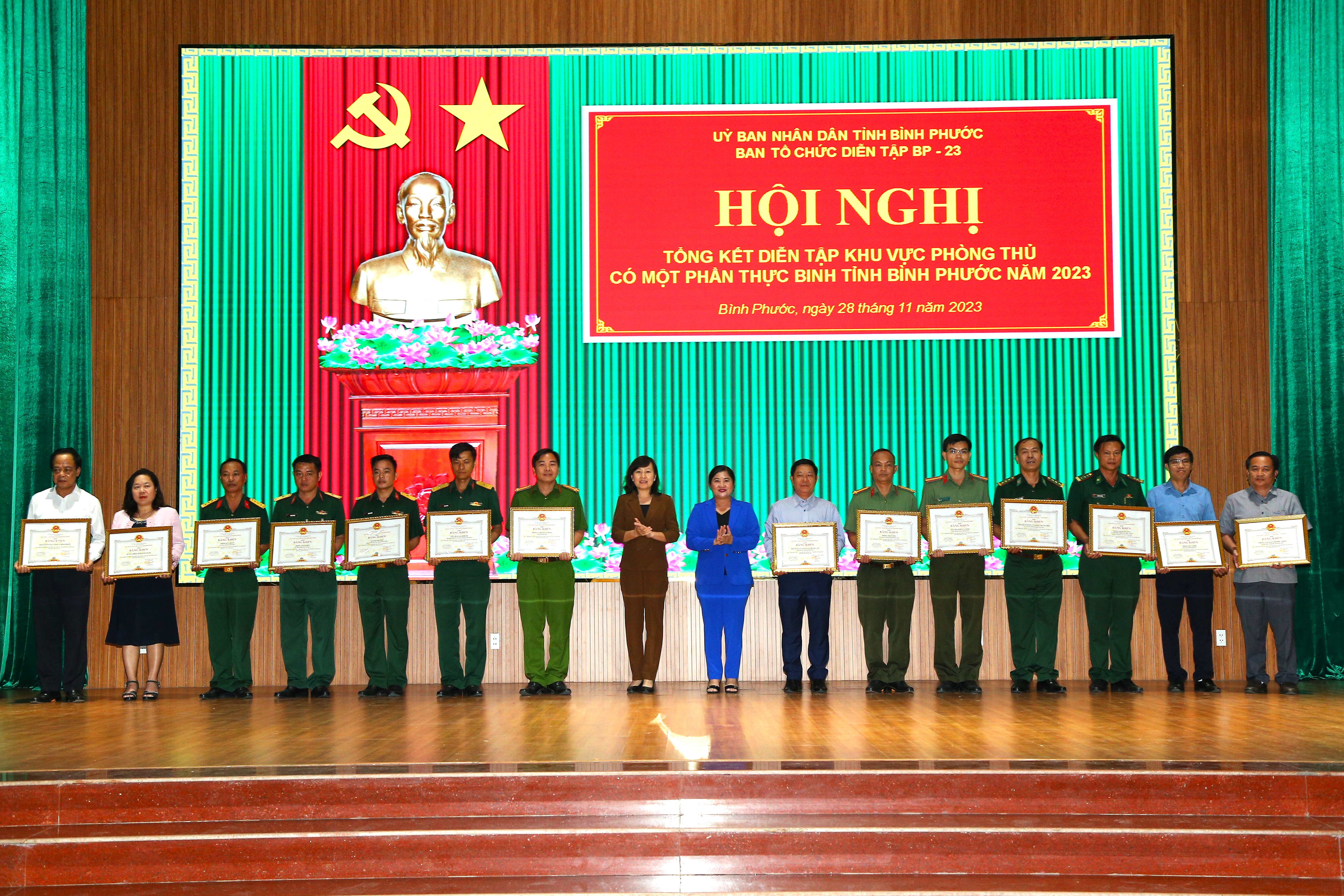 Dịp này, UBND tỉnh Bình Phước khen thưởng 15 tập thể và 30 cá nhân có thành tích xuất sắc trong diễn tập KVPT tỉnh năm 2023.
