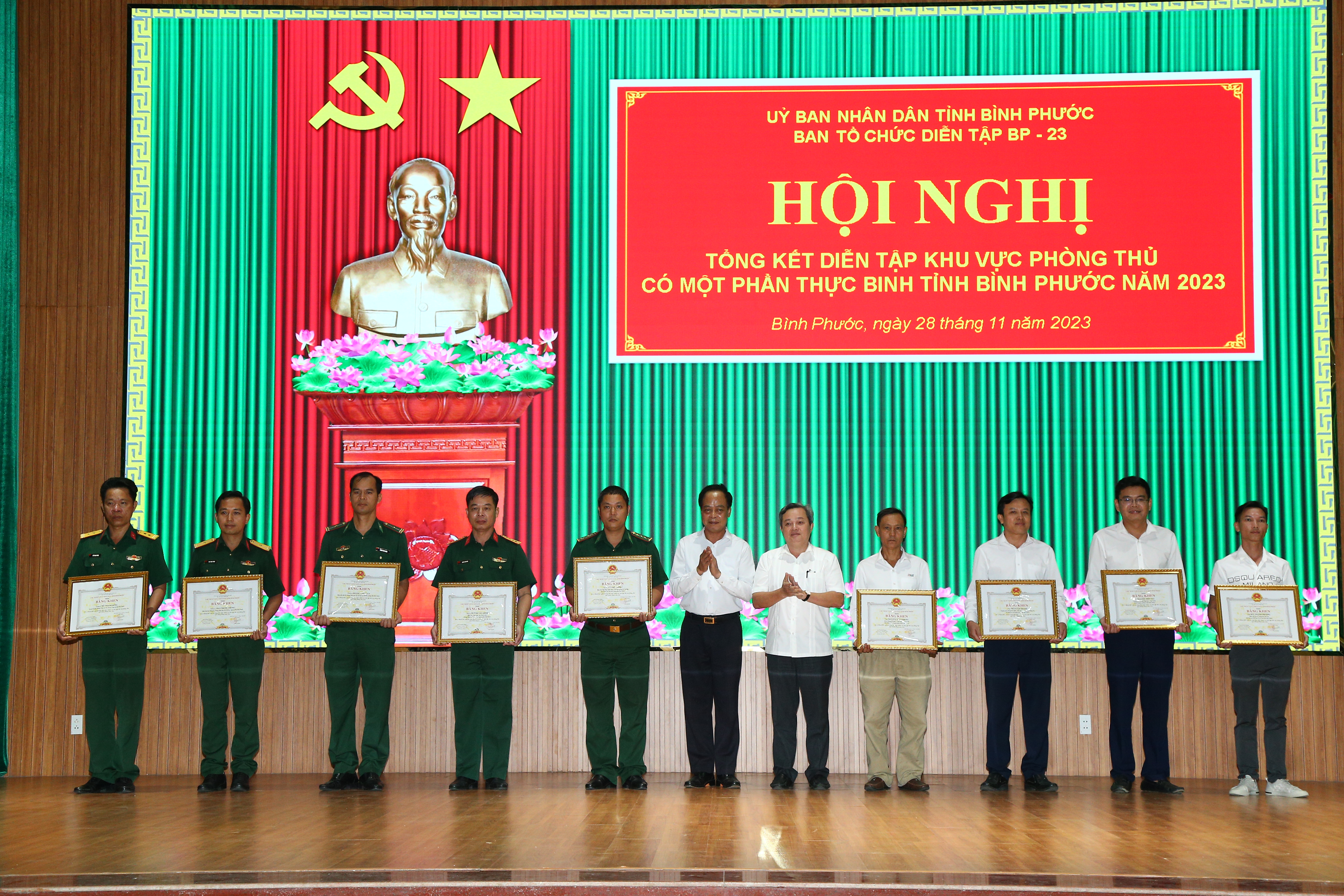 UBND tỉnh Bình Phước trao Bằng khen cho các tập thể hoàn thành xuất sắc nhiệm vụ diễn tập KVTP tỉnh năm 2023.