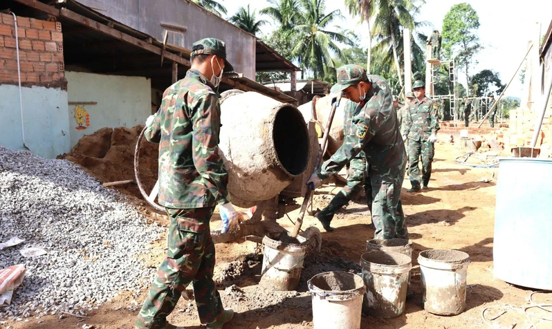 Cán bộ, chiến sĩ LLVT tỉnh Đồng Nai quyết tâm hoàn thành thắng lợi nhiệm vụ xây nhà giúp dân.