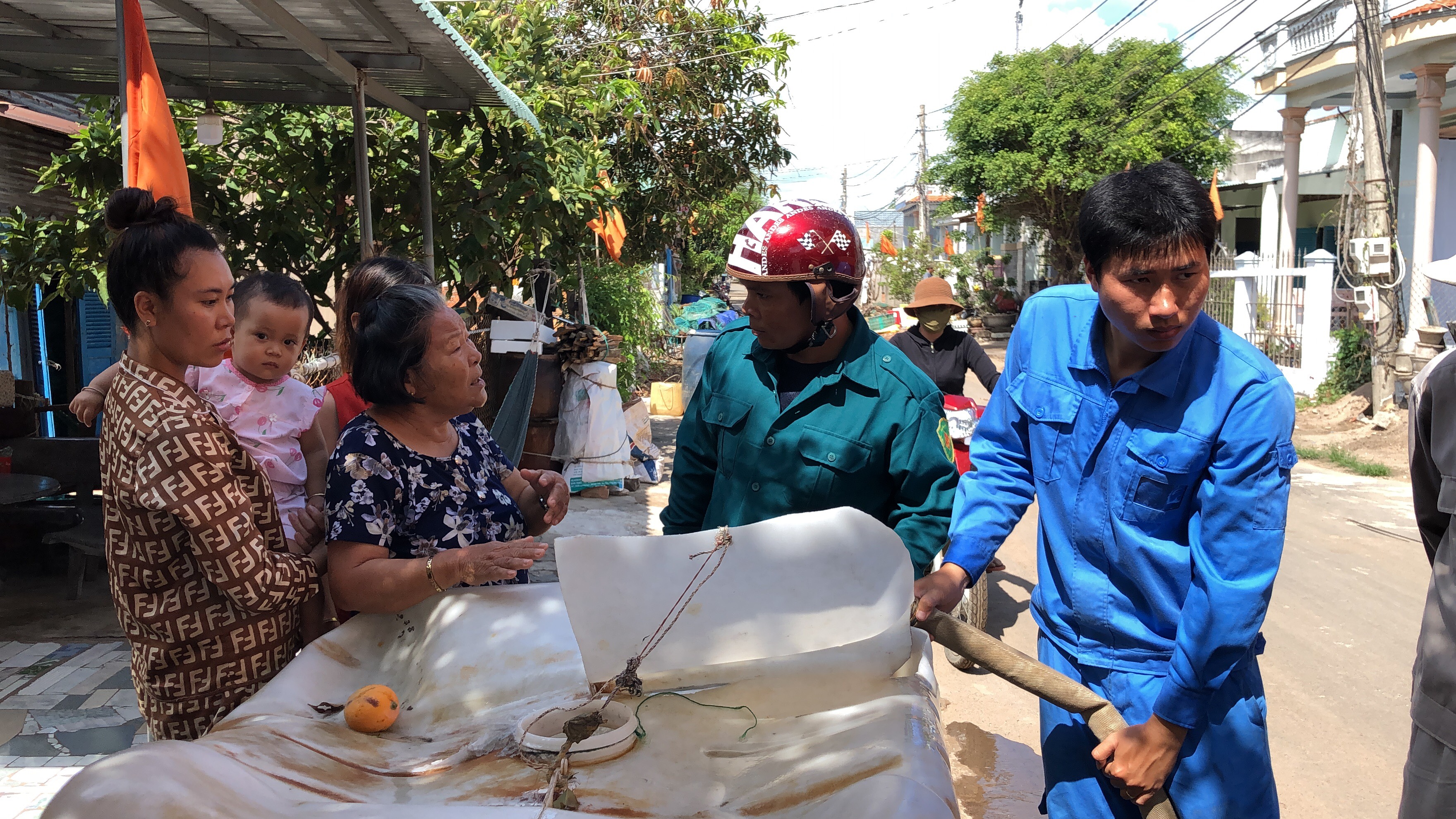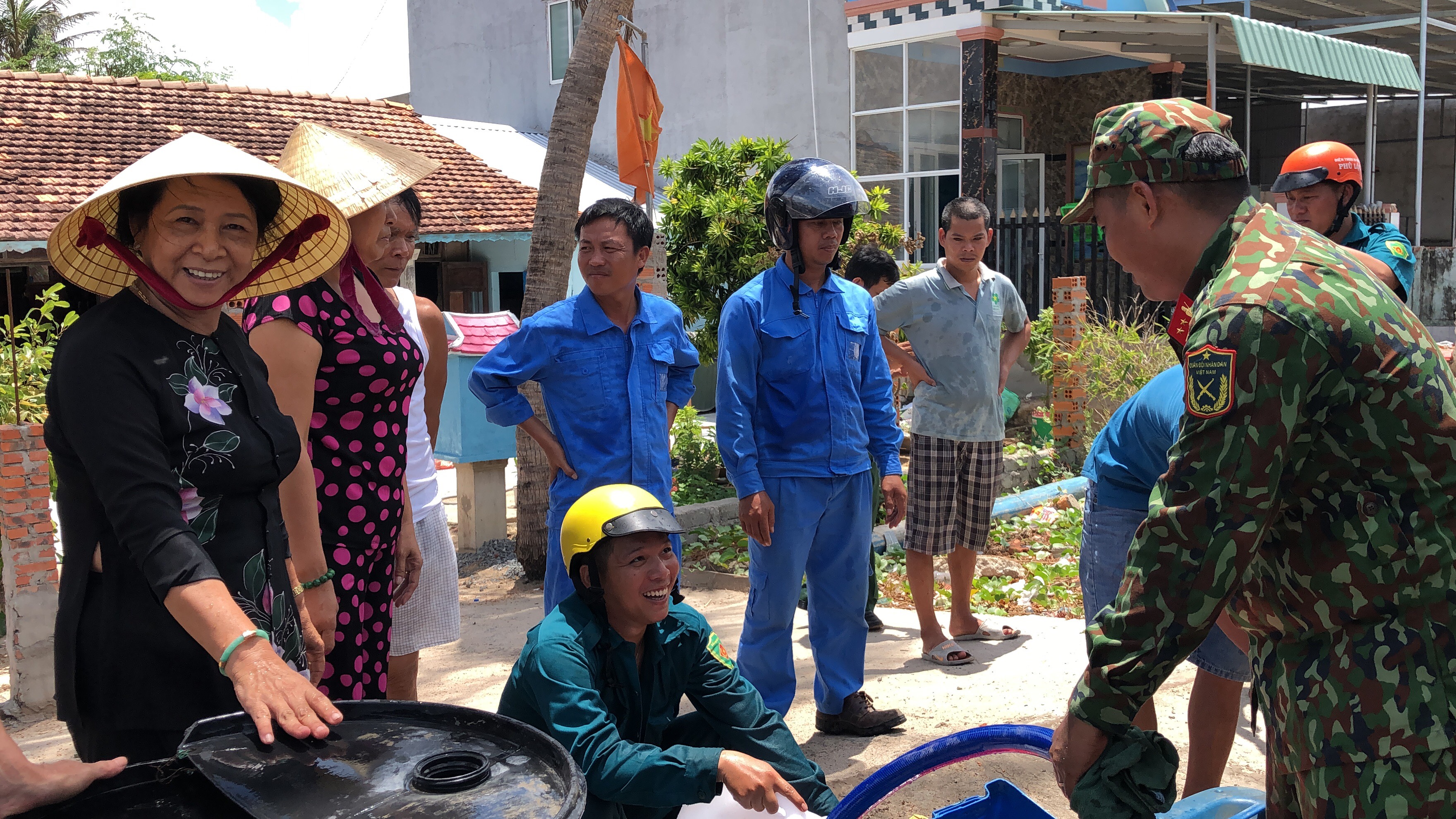 Người dân vui mừng đến nhận nước sạch về phục vụ gia đình