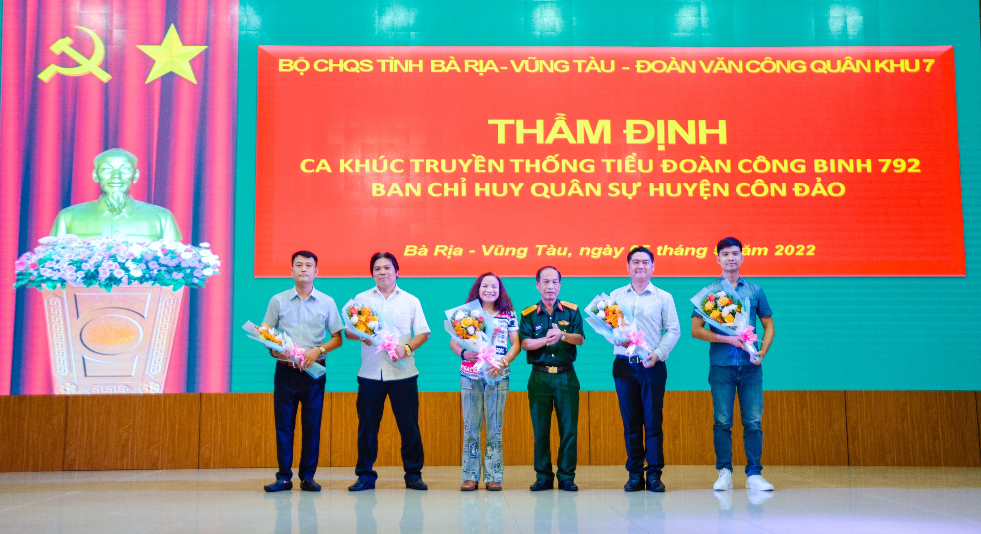 (QK7 Online) - Ngày 6-5, Bộ CHQS tỉnh BR – VT phối hợp Đoàn Văn công Quân khu 7 tổ chức thẩm định ca khúc truyền thống Tiểu đoàn Công binh 792, Ban CHQS huyện Côn Đảo.