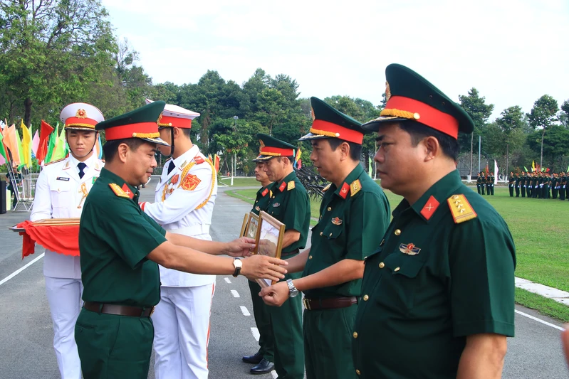 Thừa ủy quyền của Bộ Quốc phòng, Đại tá Nguyễn Tấn Linh trao tặng danh hiệu Ðơn vị vững mạnh toàn diện cho Bộ CHQS tỉnh; 5 đơn vị trực thuộc được Quân khu 7 trao tặng danh hiệu đơn vị vững mạnh toàn diện.