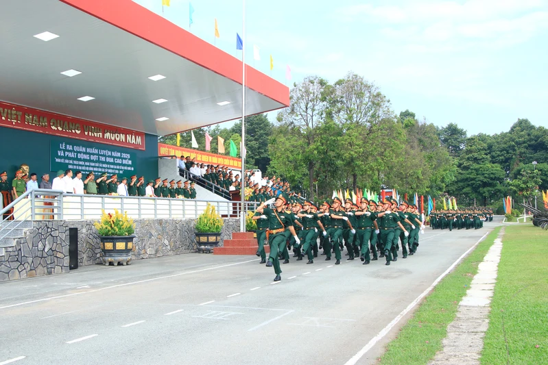 Các khối duyệt đội ngũ tại lễ ra quân huấn luyện Bộ CHQS tỉnh Đồng Nai năm 2026.