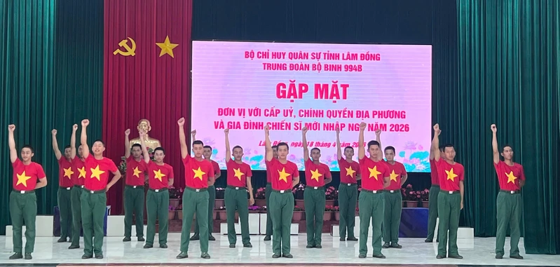 (QK7 Online) - Ngày 18/4, Bộ CHQS tỉnh Lâm Đồng chỉ đạo các đơn vị tổ chức gặp mặt cấp ủy, chính quyền địa phương và thân nhân gia đình chiến sĩ mới nhập ngũ năm 2026. Thiếu tướng Đinh Hồng Tiếng, Chỉ huy trưởng Bộ CHQS tỉnh dự gặp mặt tại Trung đoàn 994A; Đại tá Nguyễn Văn Sơn, Chính ủy Bộ CHQS tỉnh dự gặp mặt tại Trung đoàn 994B; Đại tá Nguyễn Thanh Quảng, Phó Chính ủy Bộ CHQS tỉnh dự gặp mặt tại Trung đoàn 812.