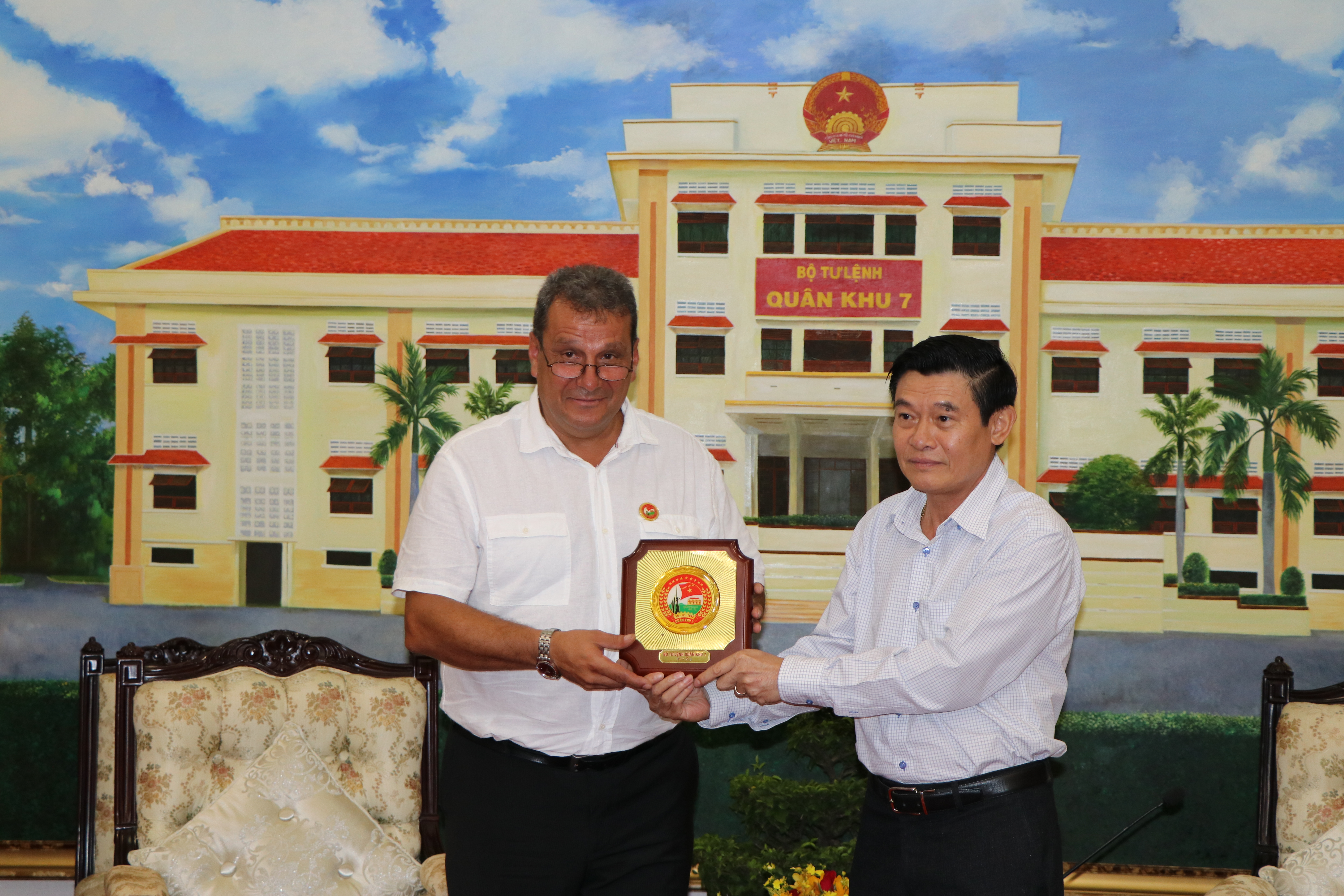 tặng biểu trưng Quân khu 7  cho Đại tá Georgi Dimitrov Georgiev,