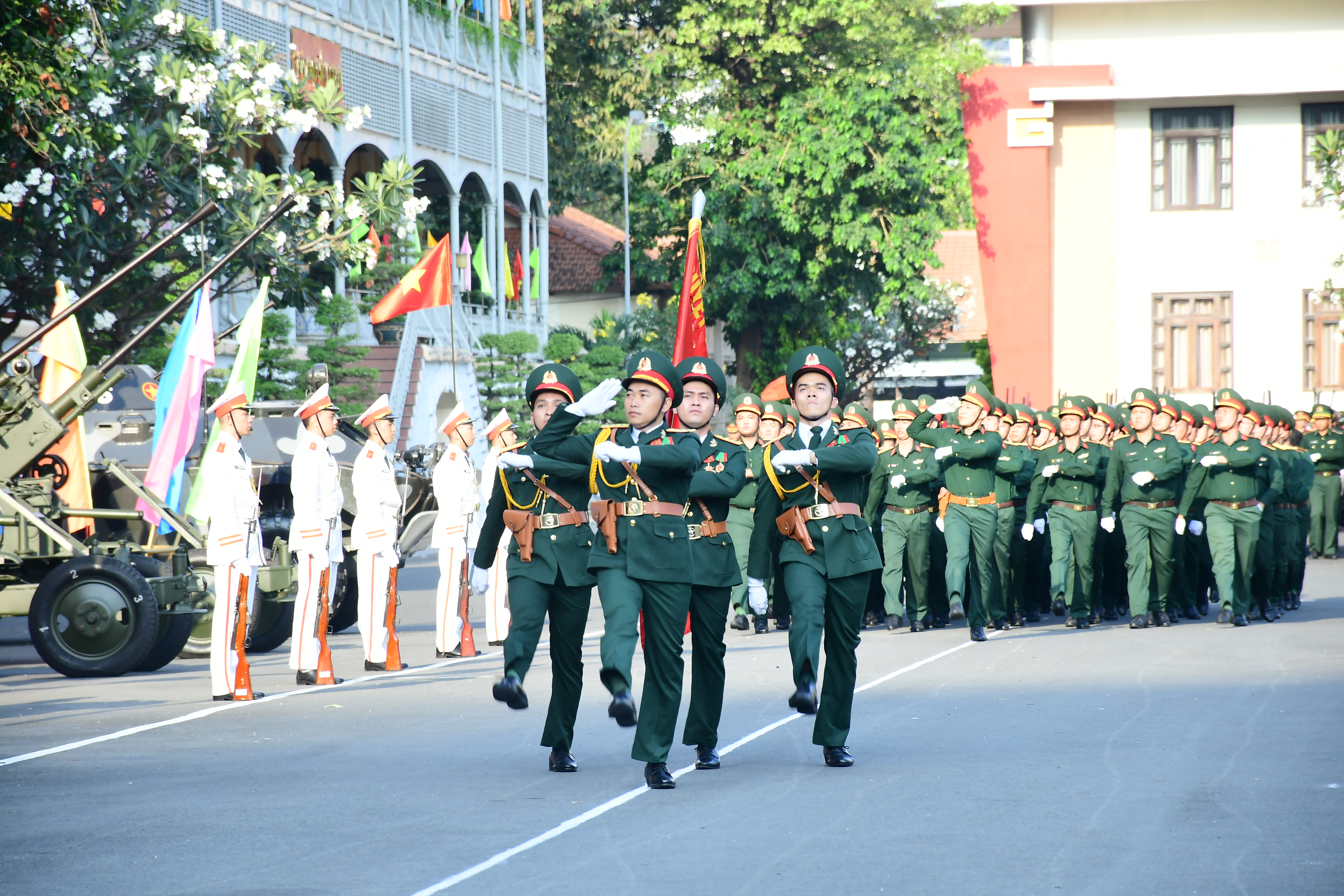 Tổ Quân kỳ và khối sỹ quan tham gia duyệt đội ngũ.