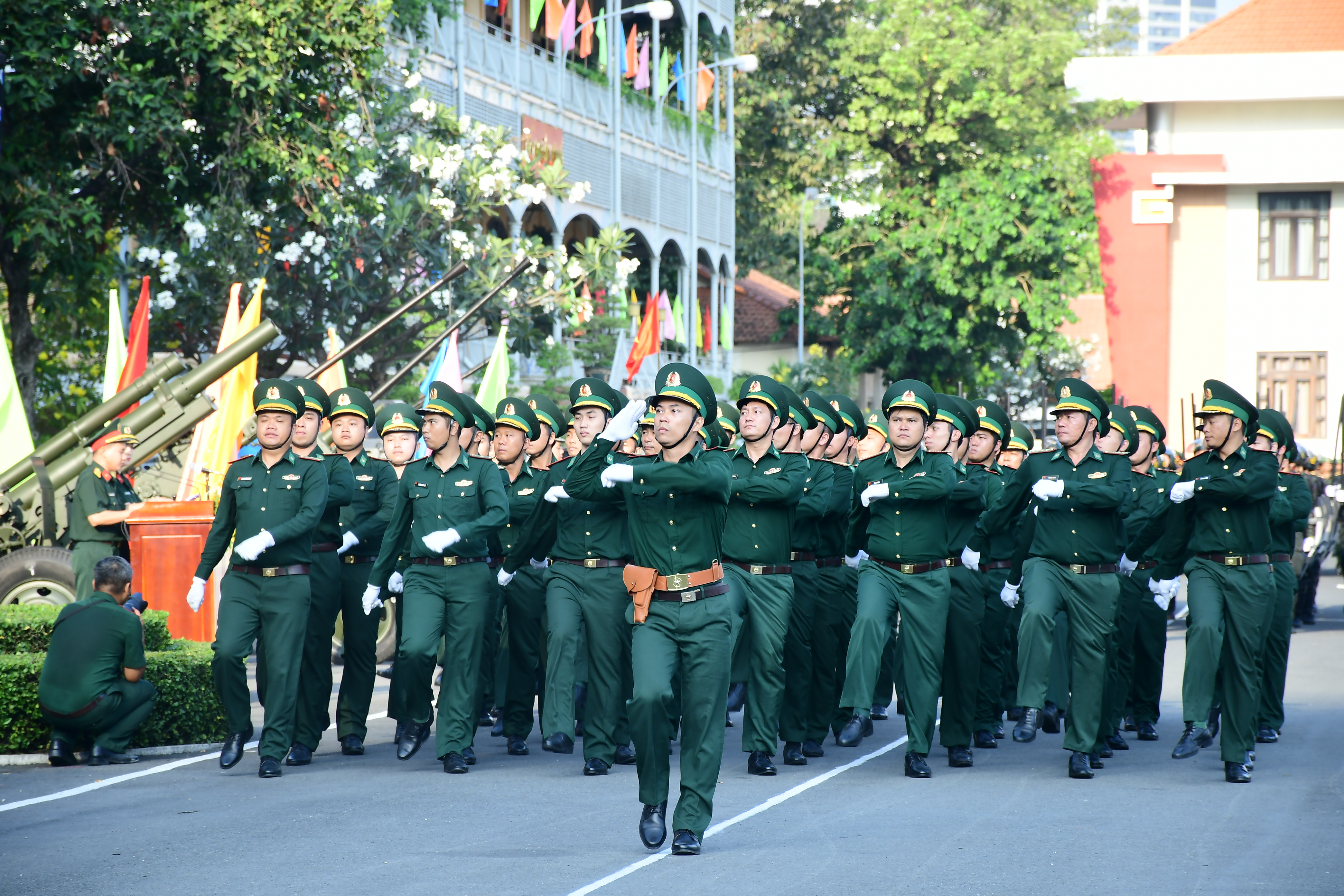 Khối sĩ quan Bộ đội Biên phòng TPHCM duyệt đội ngũ qua lễ đài.