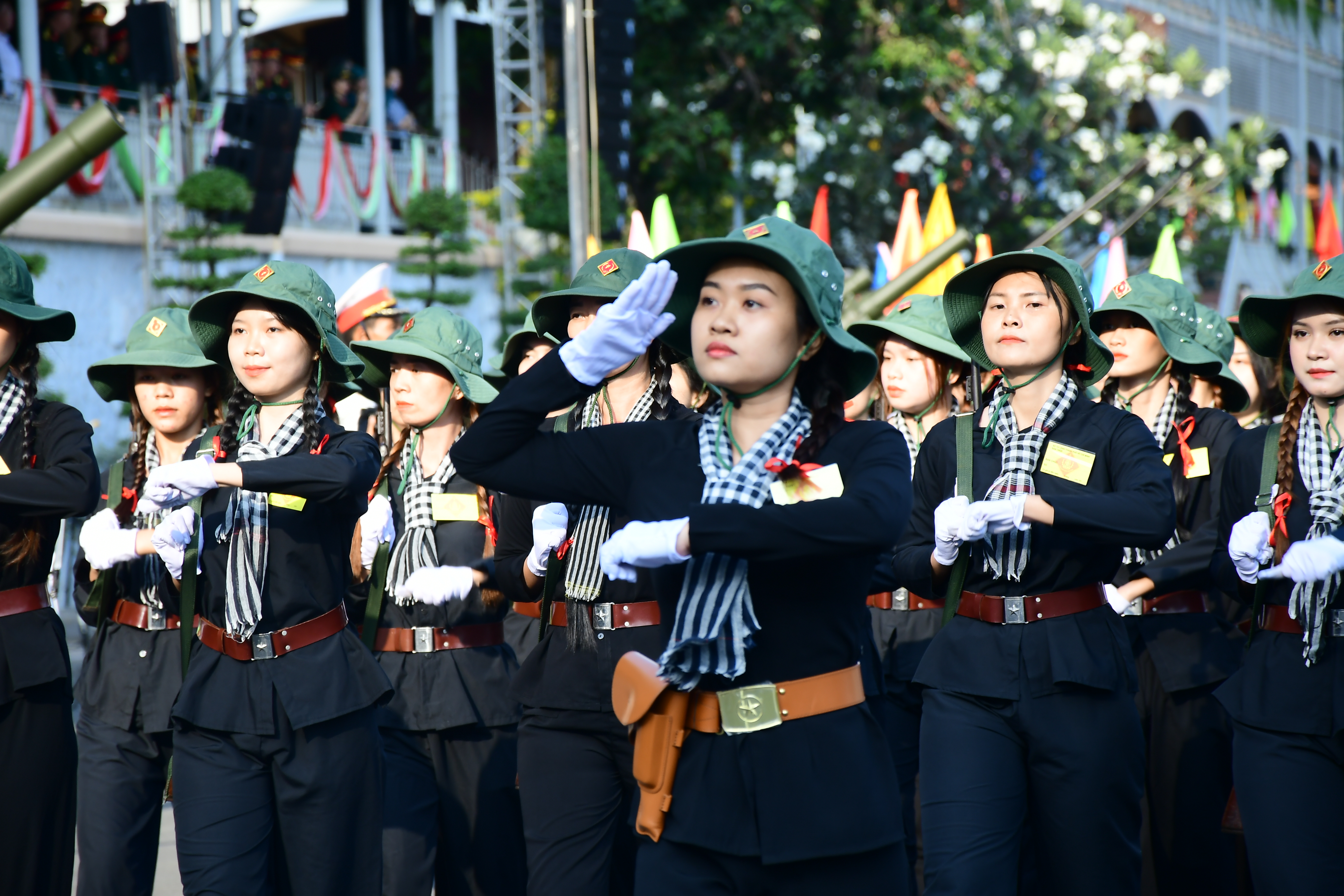 Khối Nữ dân quân tham gia duyệt đội ngũ.