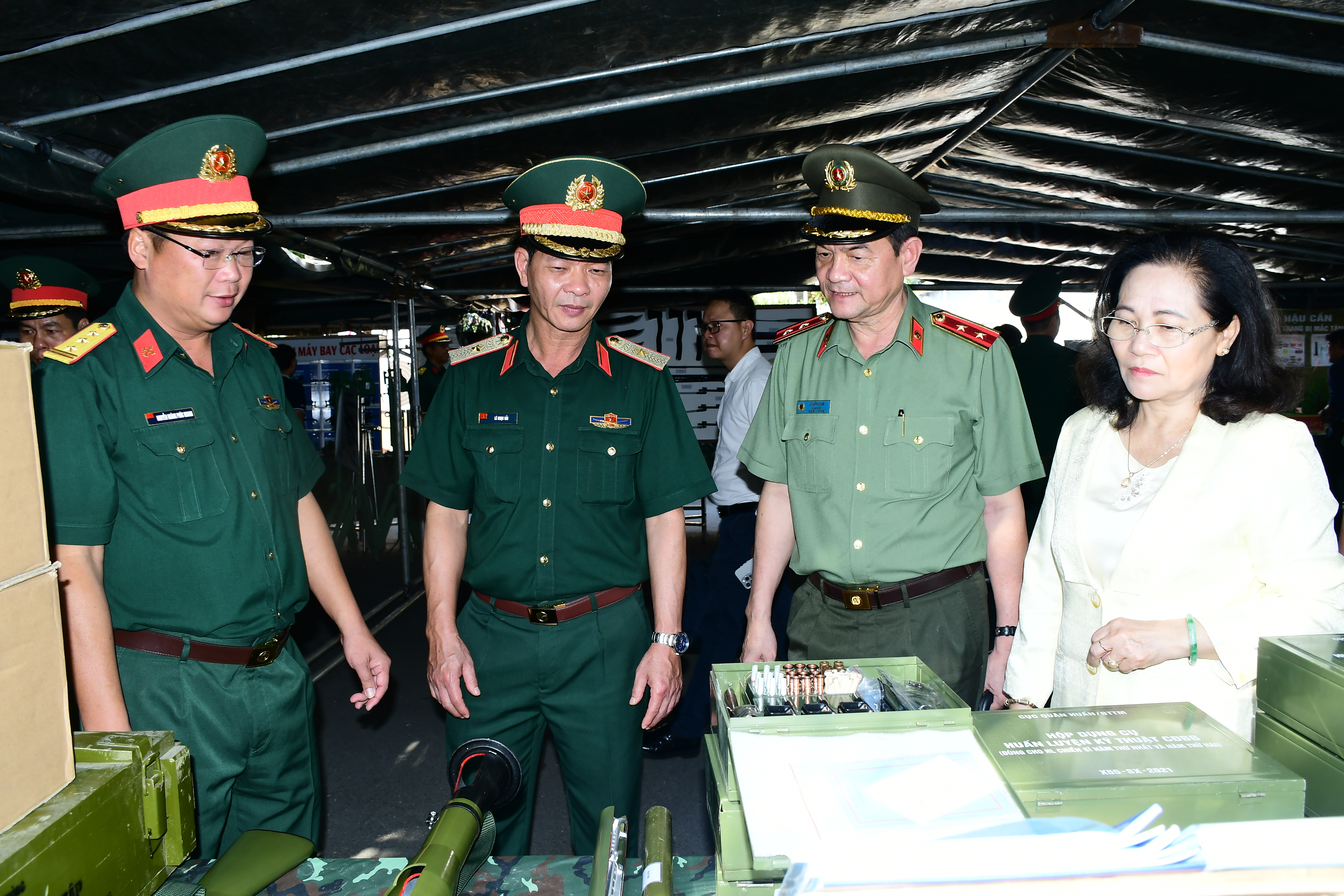 Đại biểu tham quan gian hàng trưng bày mô hình, học cụ huấn luyện của Thành phố.