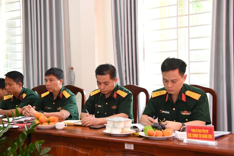 Đại diện thủ trưởng Phòng Kế hoạch Tổng hợp, Cục Chính trị Quân khu (bên phải) và đại biểu dự hội nghị.