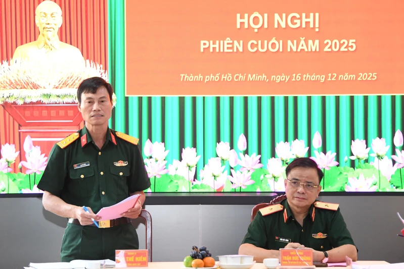 (QK7 Online) - Chiều ngày 16/12, Chi bộ Báo Quân khu 7 tổ chức Hội nghị phiên cuối năm 2025. Dự và chỉ đạo hội nghị có Thiếu tướng Trần Đức Thắng, Bí thư Đảng ủy Cục Chính trị, Phó Chủ nhiệm Chính trị Quân khu. Thượng tá Lại Thế Hiền, Phó Bí thư Chi bộ, Phó Tổng Biên tập Báo Quân khu 7 chủ trì hội nghị.