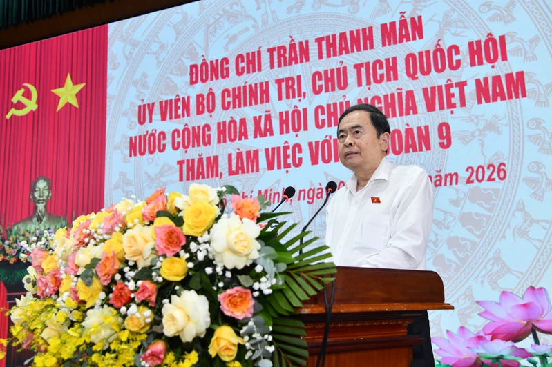 Chủ tịch Quốc hội Trần Thanh Mẫn yêu cầu Sư đoàn 9 duy trì nghiêm công tác sẵn sàng chiến đấu, phối hợp giữ vững an ninh chính trị, trật tự an toàn xã hội địa bàn, góp phần vào thành công của cuộc bầu cử đại biểu Quốc hội khóa XVI và đại biểu Hội đồng nhân dân các cấp nhiệm kỳ 2026 – 2031.