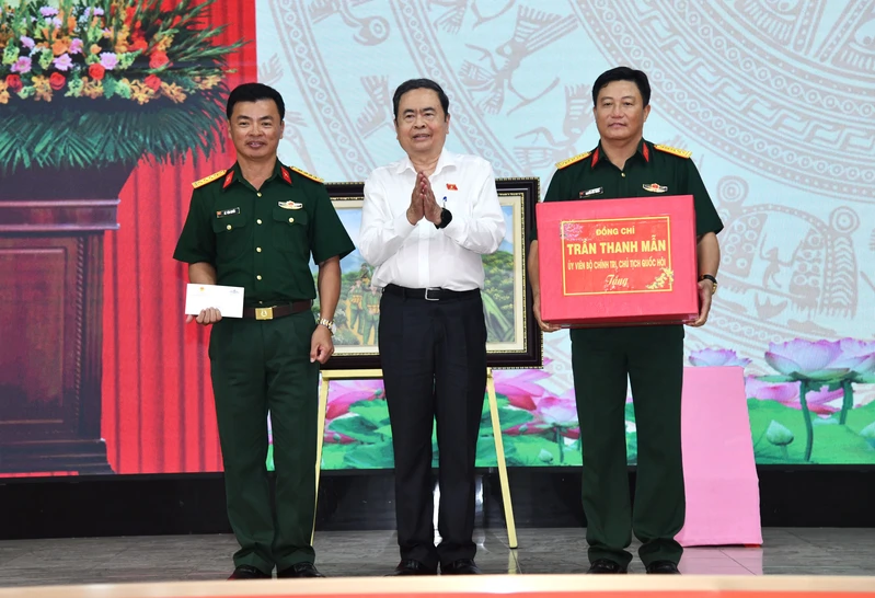 Chủ tịch Quốc hội Trần Thanh Mẫn tặng quà động viên cán bộ, chiến sĩ Sư đoàn 9.