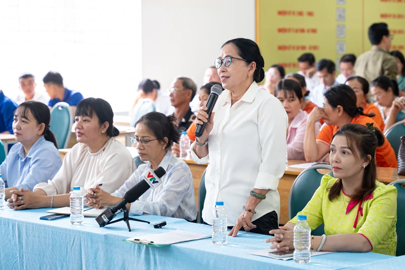 Cử tri Lê Thị Hồng Việt nêu ý kiến và kiến nghị tại buổi tiếp xúc.