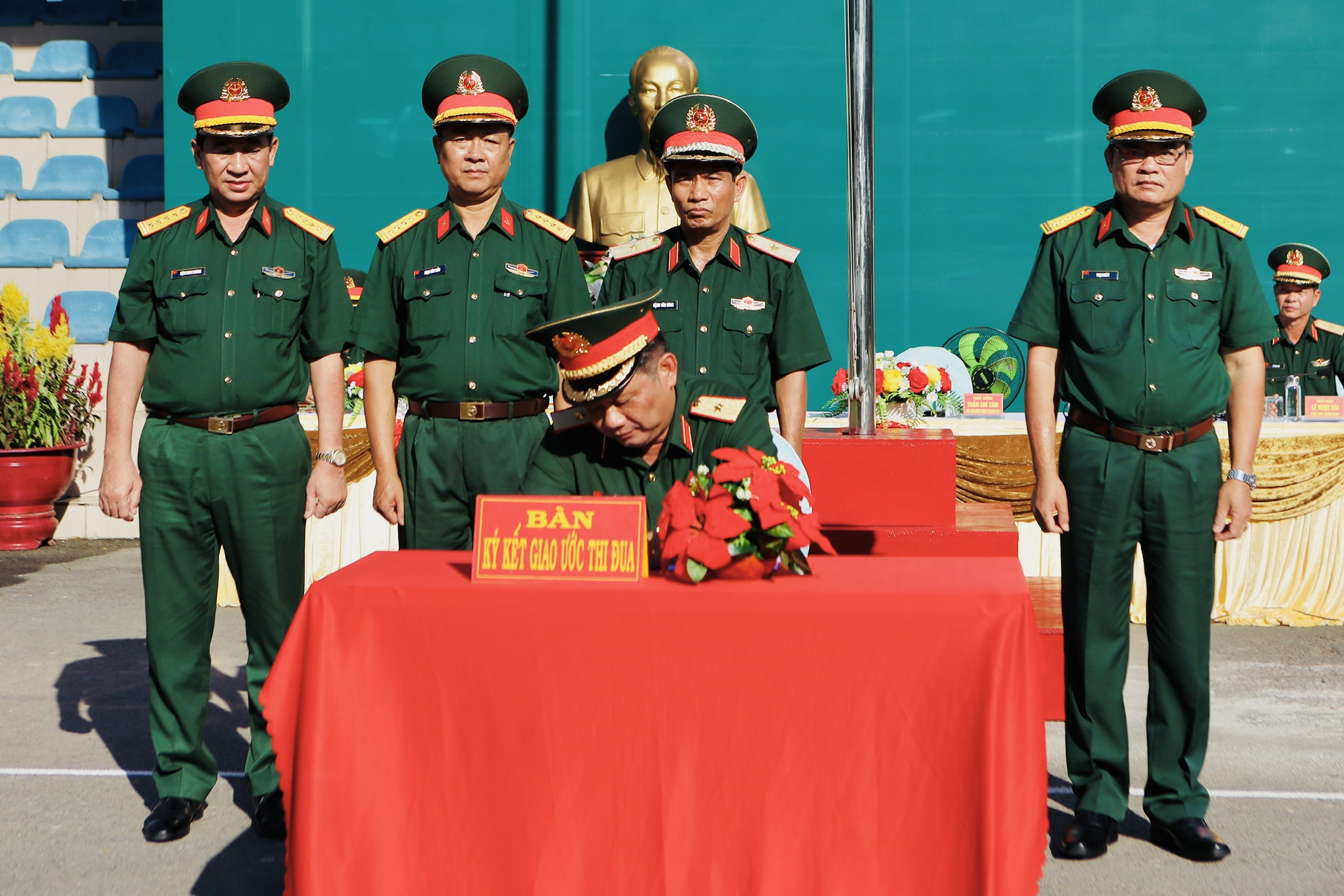 Thủ trưởng Bộ Tư lệnh Quân khu chứng kiến các cơ quan Quân khu ký kết giao ước thi đua.
