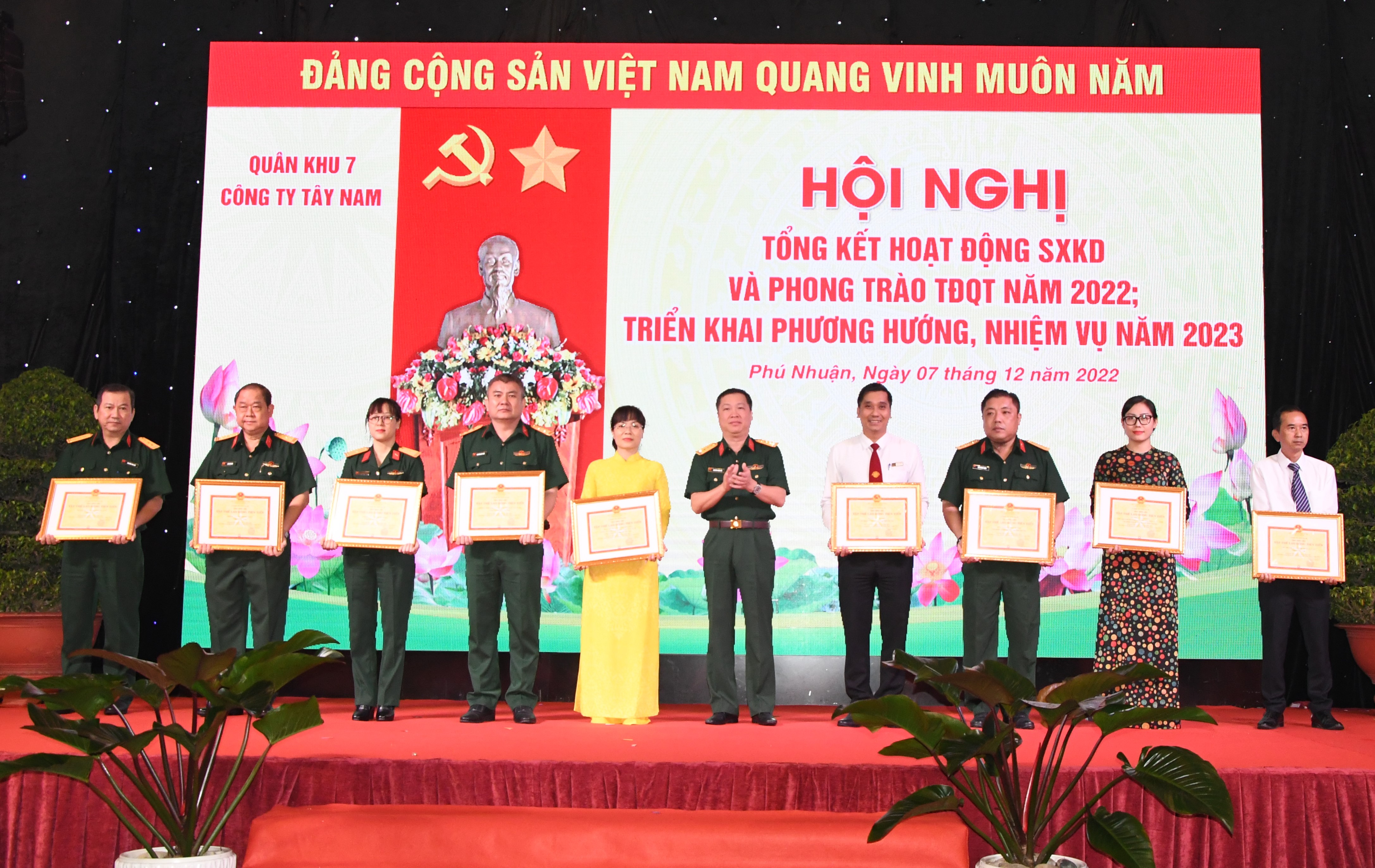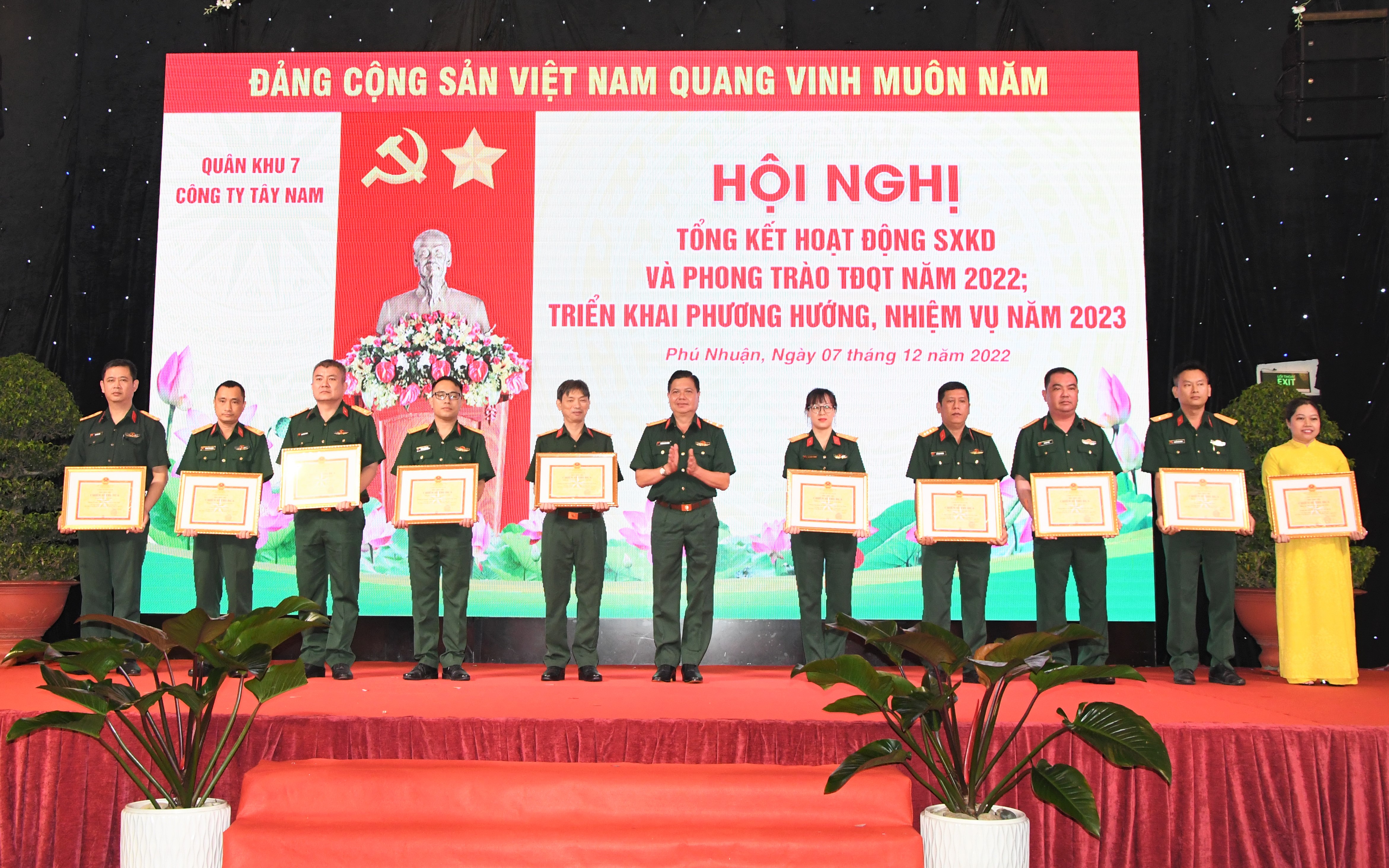 Dịp này, Công ty Tây Nam trao danh hiệu lao động tiên tiến cho 9 tập thể; tặng danh hiệu Chiến sĩ thi đua cơ sở cho 49 đồng chí hoàn thành xuất sắc, tiêu biểu phong trào Thi đua quyết thắng năm 2022.