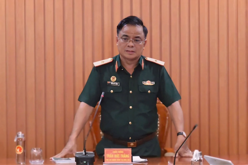 Thiếu tướng Trần Đức Thắng, Bí thư Đảng ủy Cục Chính trị, Phó Chủ nhiệm Chính trị Quân khu chủ trì hội nghị.