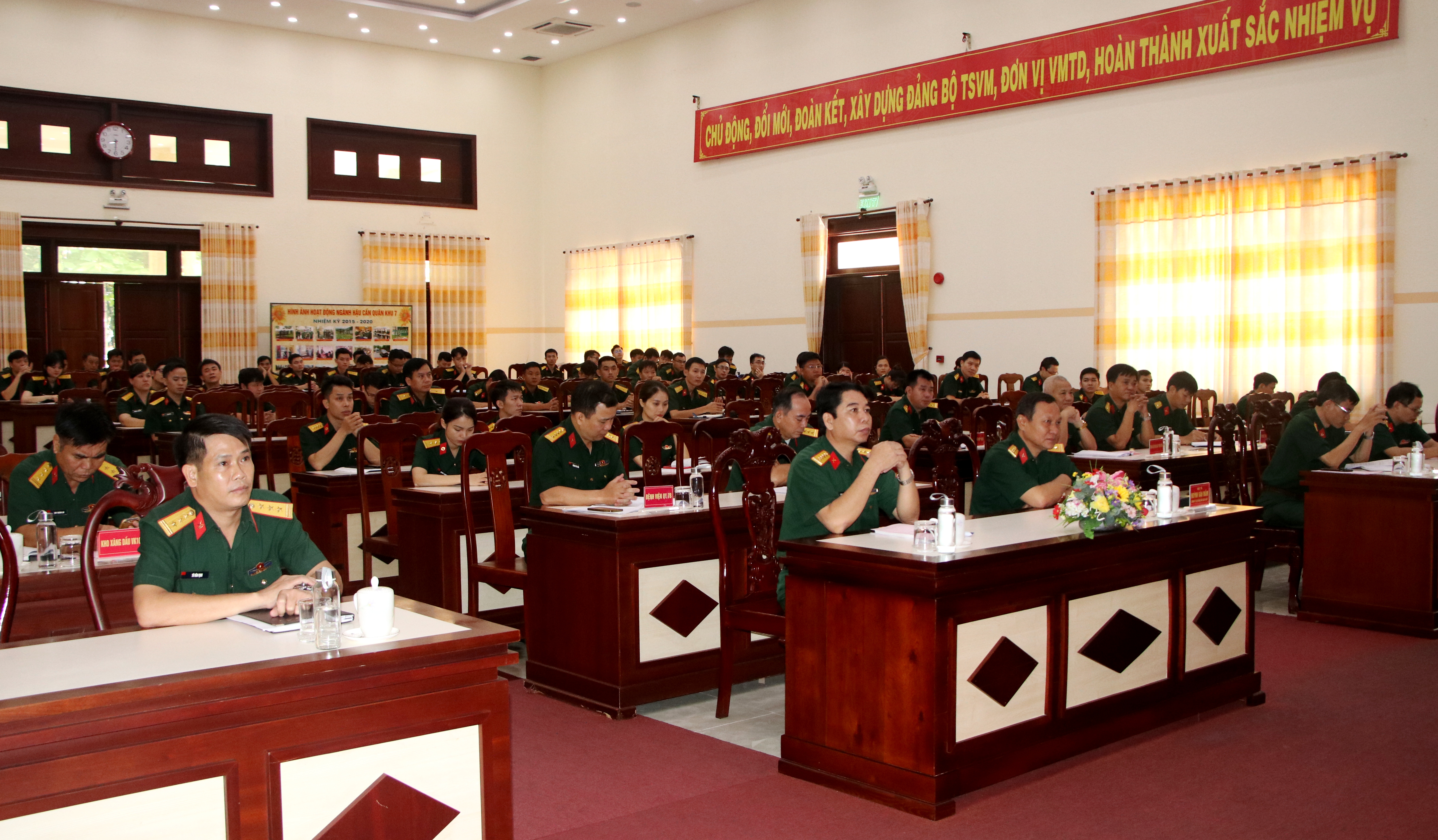 (QK7 Online) - Ngày 15/9, Cục Hậu cần Quân khu tổ chức tọa đàm cán bộ, sĩ quan trẻ năm 2020 với chủ đề “Cán bộ, sĩ quan trẻ Cục Hậu cần sáng tạo, cống hiến, kỷ cương”. Đại tá Huỳnh Văn Mầm, Bí thư Đảng ủy, Chính ủy Cục Hậu cần dự và chỉ đạo buổi tọa đàm.