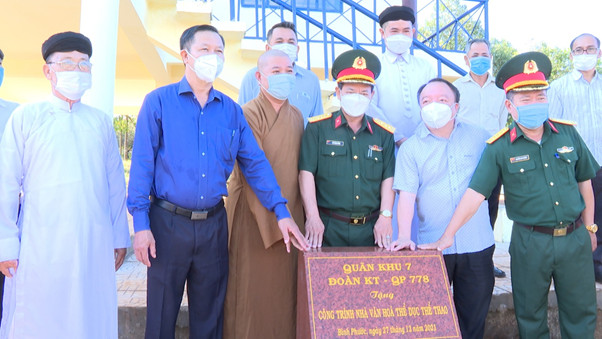 (QK7 Online) – Ngày 27/12, Đoàn Kinh tế - Quốc phòng 778 (Quân khu 7) phối hợp với cấp ủy, chính quyền địa phương tổ chức lễ khánh thành công trình văn hóa, thể dục thể thao cho Nhân dân thôn Đắk Son 1, xã Phú Nghĩa, huyện Bù Gia Mập, tỉnh Bình Phước.