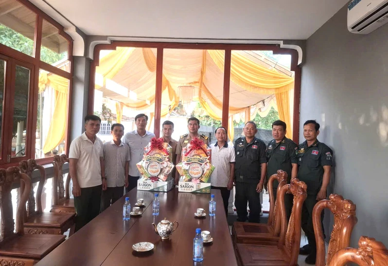 Đồn Biên phòng Kà Tum thăm, tặng quà cho chính quyền, lực lượng bảo vệ biên giới Campuchia.