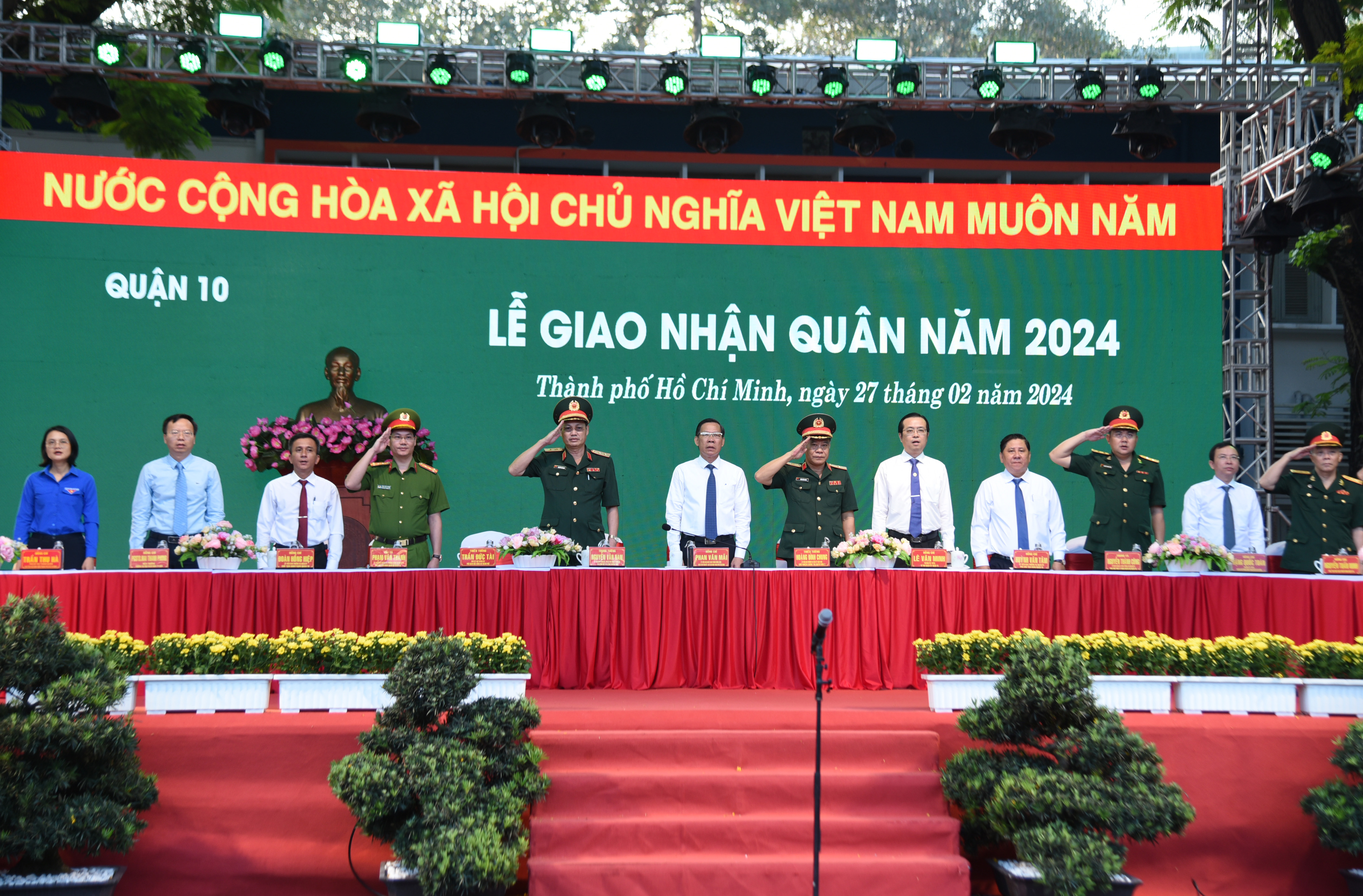 Dự lễ giao nhận quân tại Quận 10, Thành phố Hồ Chí Minh có Ủy viên Ban chấp hành Trung ương Đảng, Phó Bí thư Thành ủy, Chủ tịch Ủy ban Nhân dân Thành phố Hồ Chí Minh, Chủ tịch Hội đồng Nghĩa vụ quân sự Thành phố Hồ Chí Minh Phan Văn Mãi; Thiếu tướng Hoàng Đình Chung, Ủy viên Ban Thường vụ Đảng ủy Quân khu, Chủ nhiệm Chính trị Quân khu; Trung tướng Nguyễn Văn Nam, Ủy viên Ban Thường vụ Thành ủy, Tư lệnh Bộ Tư lệnh Thành phố Hồ Chí Minh.