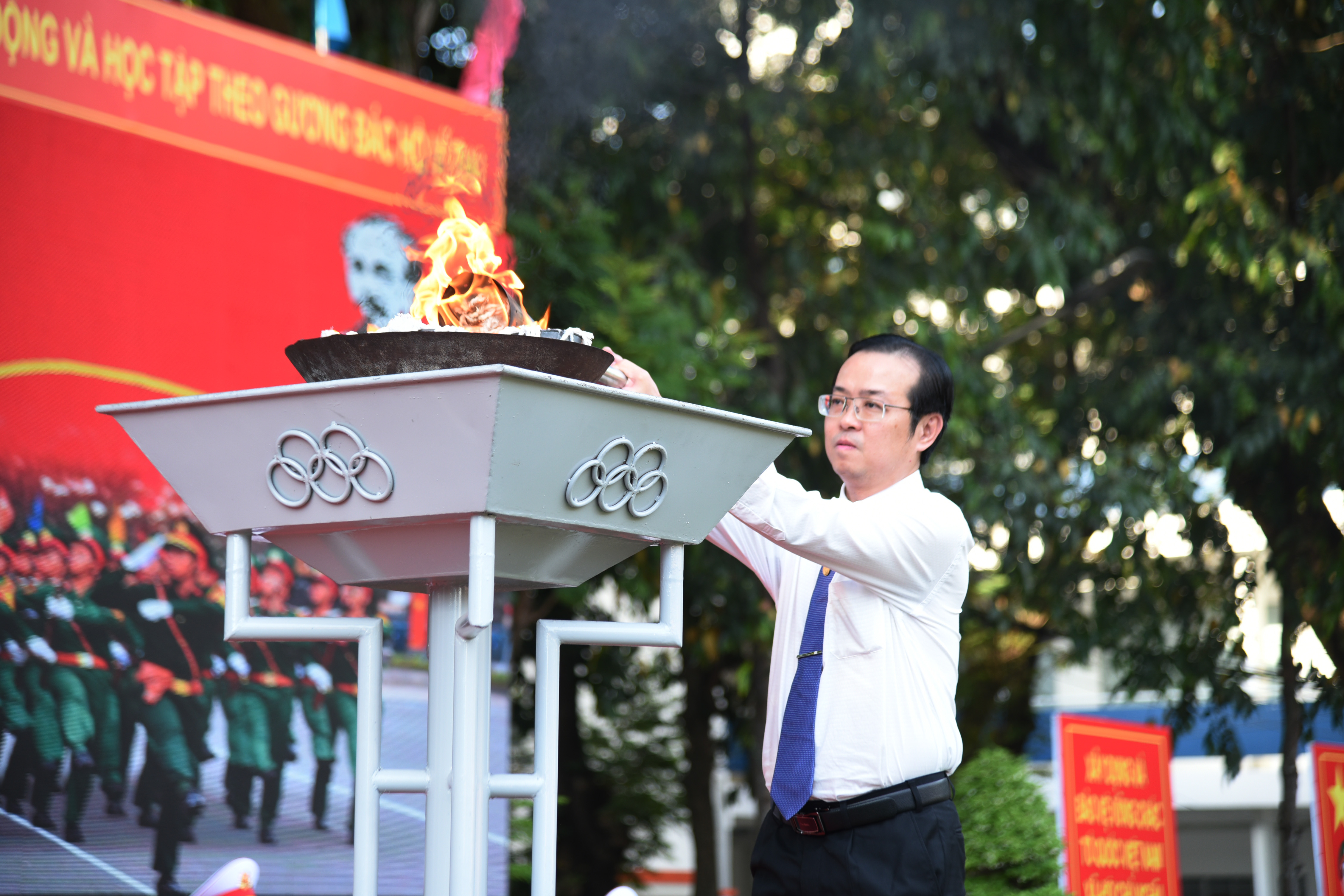 Đồng chí Lê Văn Minh, Bí thư Quận ủy Quận 10 thắp đuốc truyền thống.