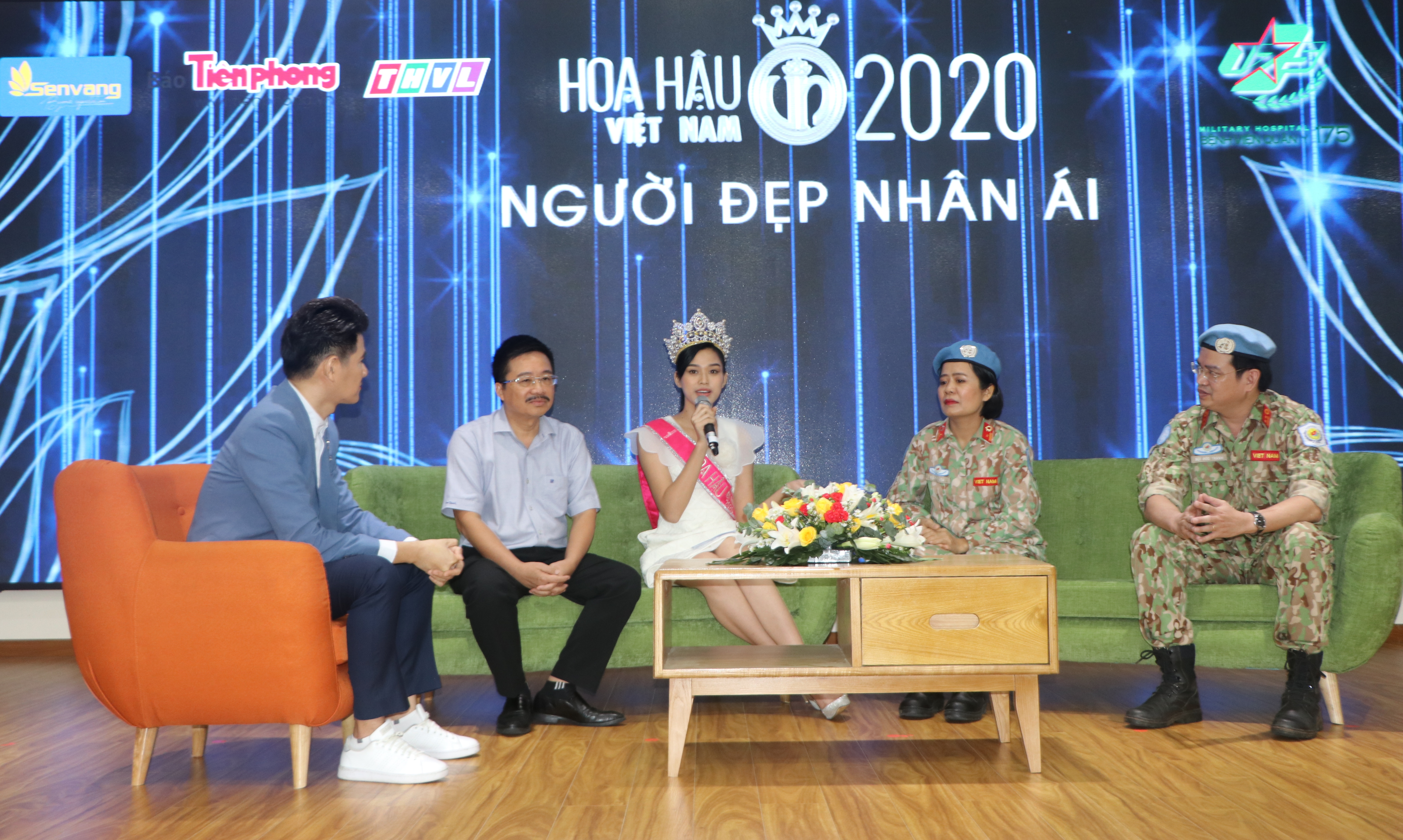 Tốp 3 HHVN 2020, Người đẹp Nhân ái bày tỏ sự ngưỡng mộ, cảm phục đội ngũ cán bộ, nhân viên bệnh viện thực hiện nhiệm vụ quốc tế. Quá trình công tác, các đồng chí nỗ lực vượt qua mọi khó khăn, thử thách, hoàn thành xuất sắc nhiệm vụ, góp phần giới thiệu hình ảnh đất nước, con người, Quân đội Nhân dân Việt Nam đến bạn bè quốc tế.