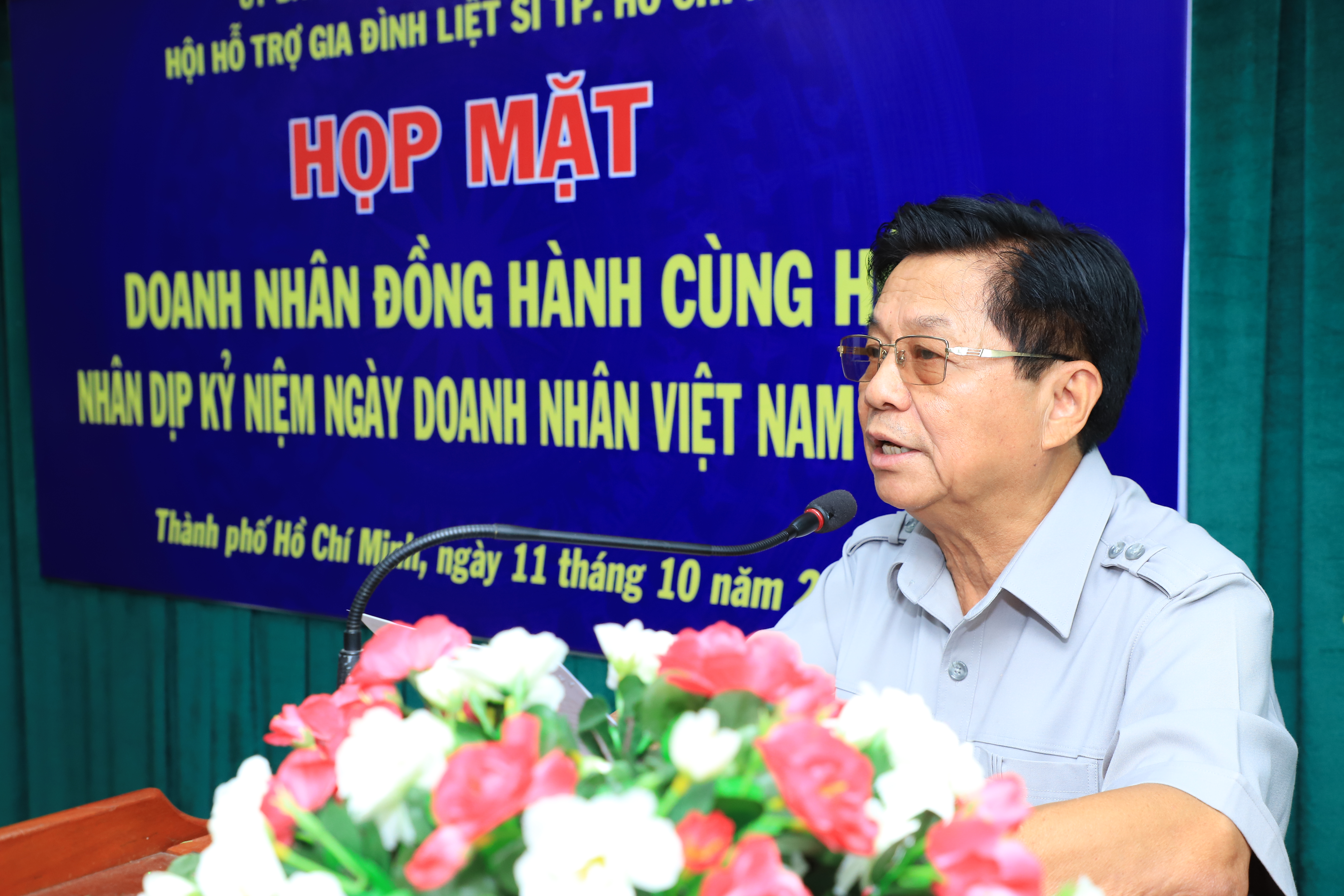 Đại tá, nhà báo Trần Thế Tuyển - Chủ tịch Hội Hỗ trợ gia đình liệt sĩ TPHCM phát biểu tri ân các doanh nghiệp.