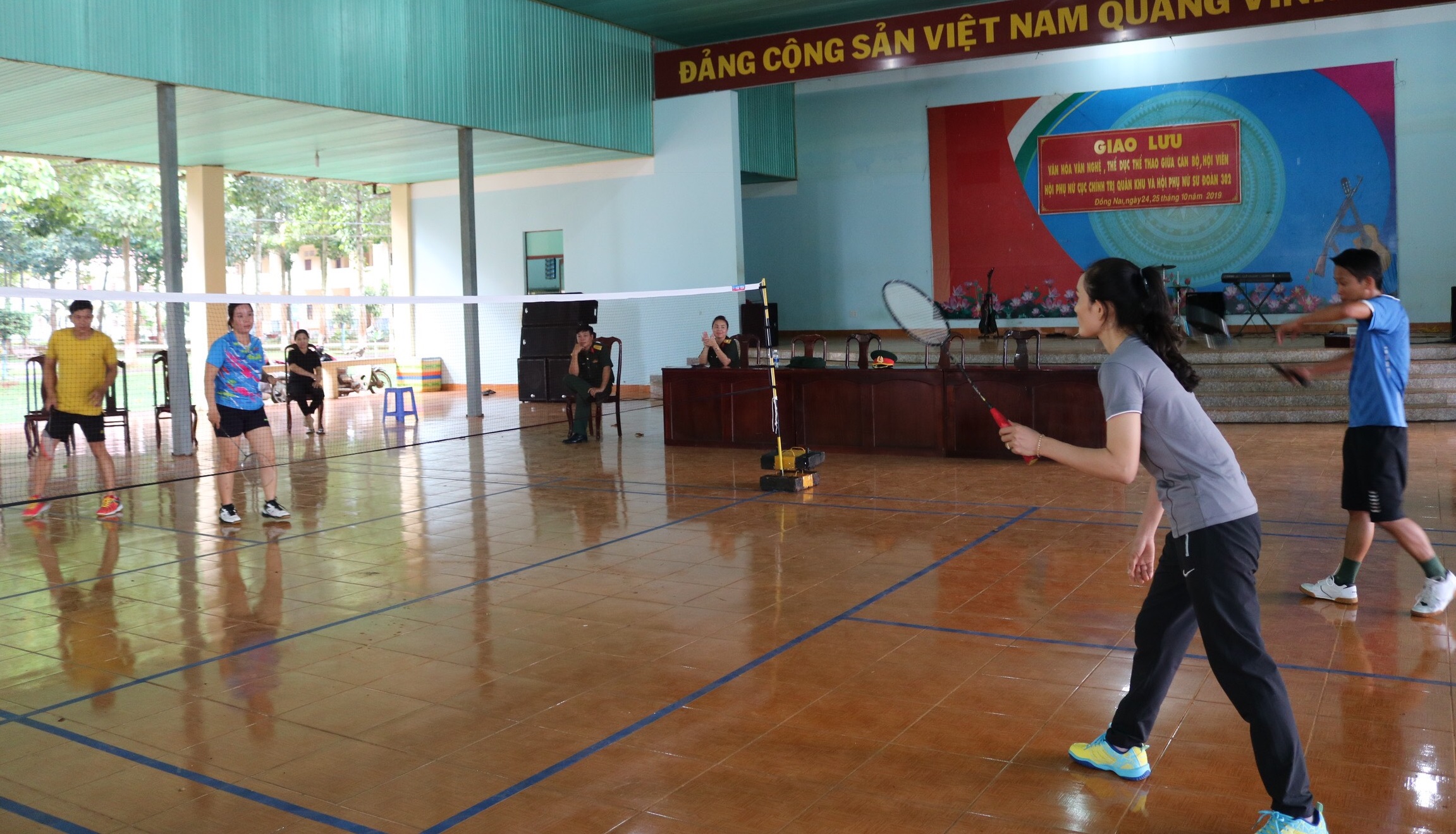 Tặng cờ lưu niệm cho 2 đội giao lưu thể dục thể thao