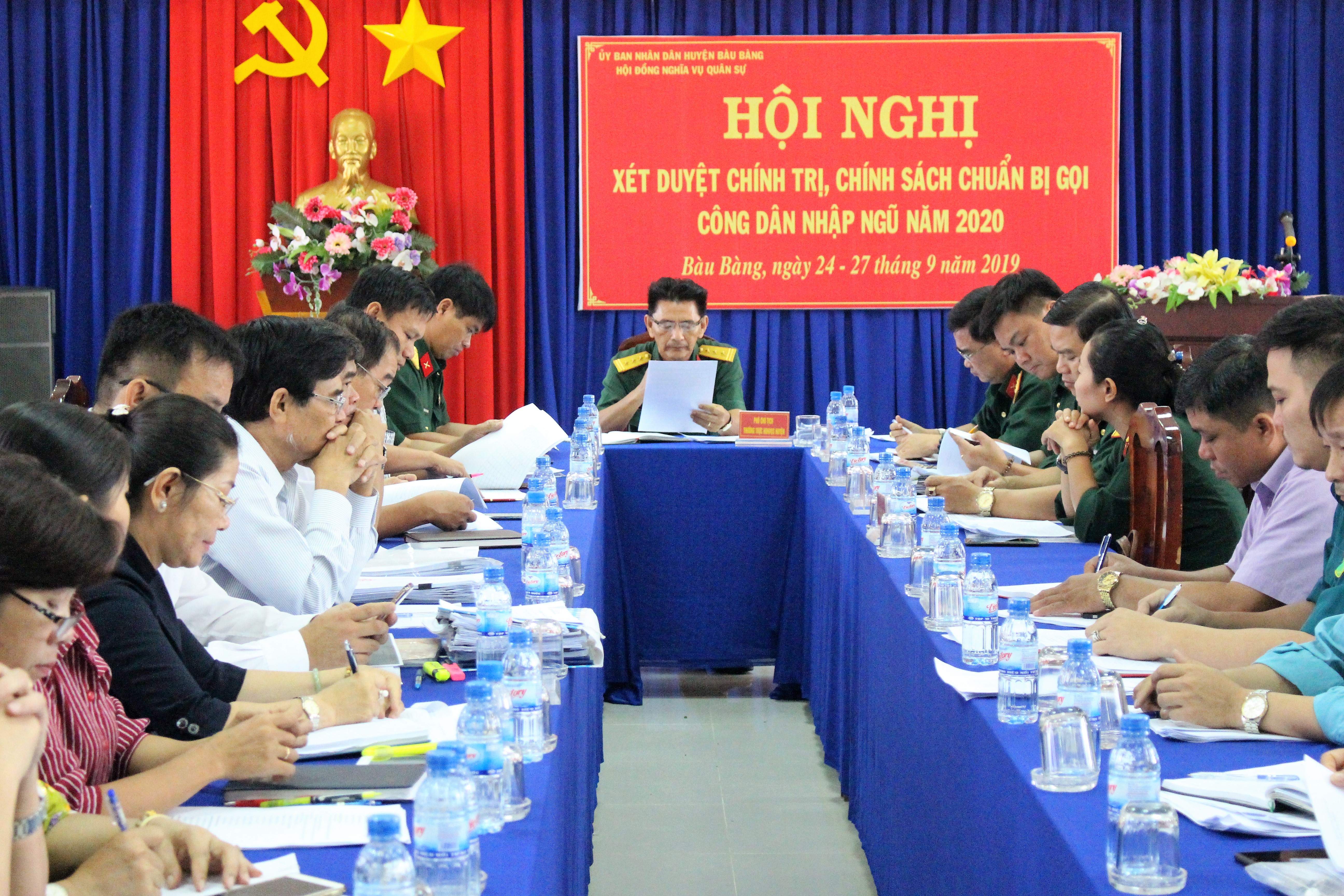 (QK7 Online) - Ngày 24/9/2019, Hội đồng nghĩa vụ quân sự huyện Bàu Bàng tổ chức xét duyệt chính trị, chính sách chuẩn bị tuyển chọn và gọi công dân nhập ngũ năm 2020.