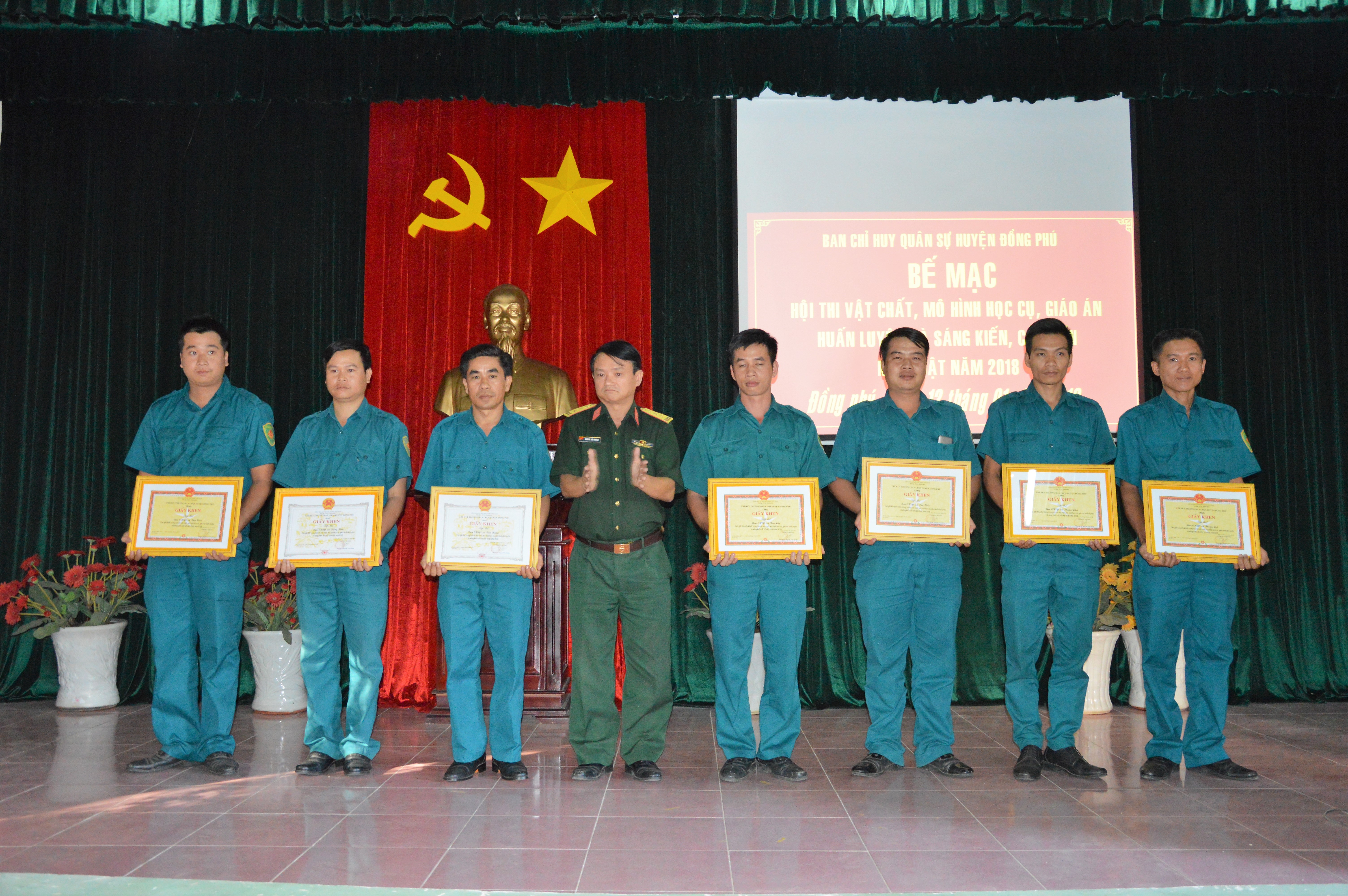 Ban CHQS huyện Đồng Phú, tỉnh Bình Phước khen thưởng cho các tập thể đạt giải cao trong hội thi vật chất, dụng cụ huấn luyện năm 2018.                                                                 Ảnh: Văn Minh