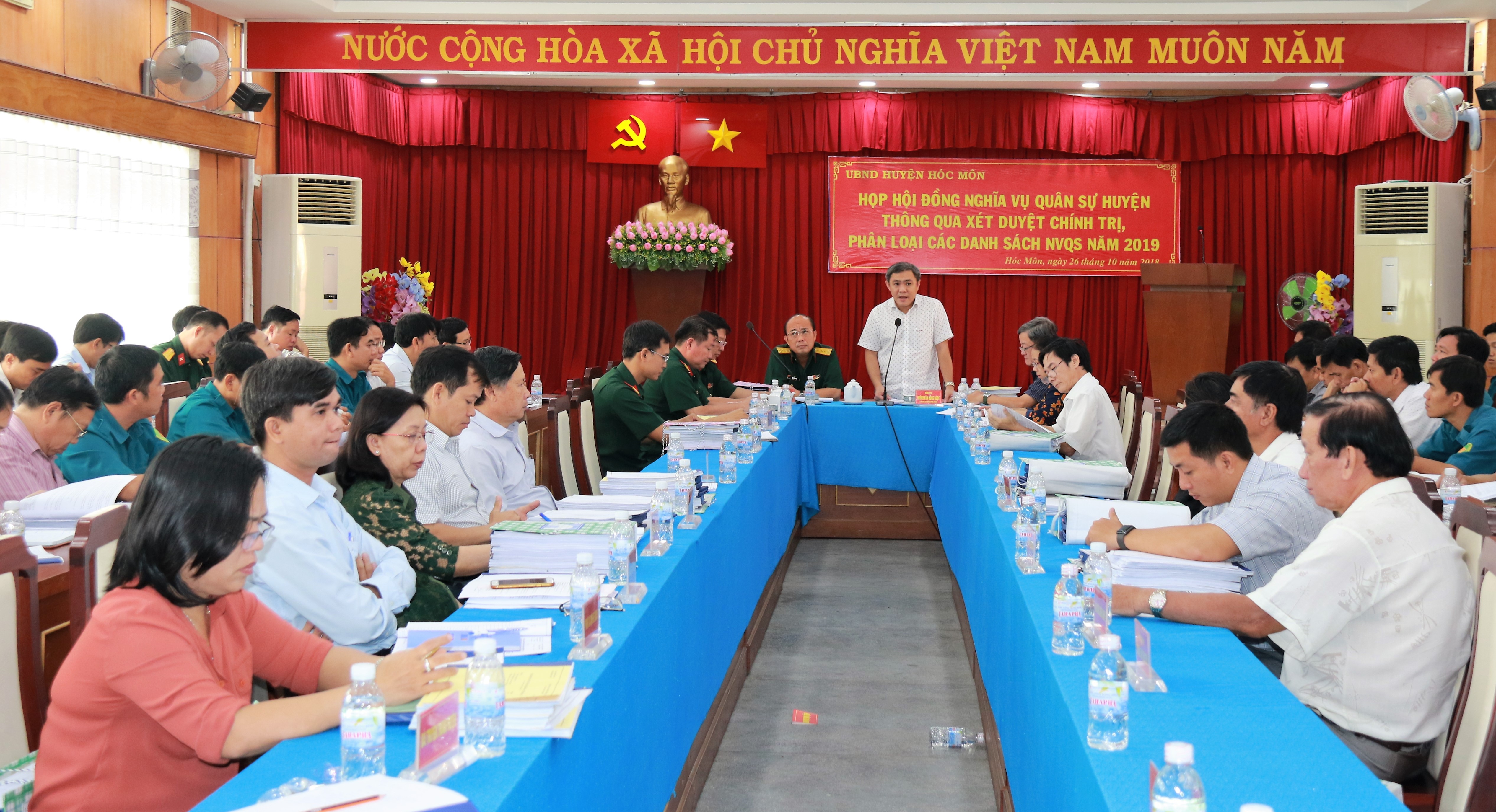 Kết luận hội nghị, đồng chí Huỳnh Văn Hồng Ngọc, Phó Bí thư Huyện ủy, Chủ tịch UBND huyện đề nghị Hội đồng nghĩa vụ quân sự huyện, xã - thị trấn cần chủ động phối hợp chặt chẽ với các ban, ngành, đoàn thể nắm chắc và quản lý nguồn thanh niên sẵn sàng nhập ngũ, làm tốt công tác sơ tuyển đảm bảo đúng độ tuổi, nghề nghiệp, công việc, trình độ để chủ động trong quá trình tuyển chọn gọi công dân nhập ngũ cũng như việc đảm bảo công tác tuyển quân đúng luật, đúng quy trình. Tiếp tục đẩy mạnh công tác tuyên truyền sâu rộng Luật Nghĩa vụ quân sự đến với quần chúng nhân dân, đôn đốc, nhắc nhở, động viên các thanh niên và gia đình có con em nằm trong diện gọi khám tuyển nghĩa vụ quân sự thực hiện tốt nghĩa vụ công dân trong xây dựng và bảo vệ Tổ quốc.