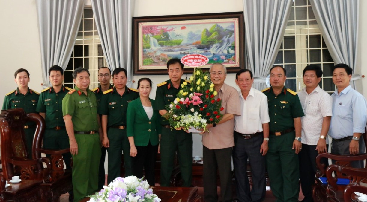 Đồng chí Nguyễn Cư, Bí thư Huyện ủy huyện Hóc Môn chúc mừng các đơn vị Quân đội trên địa bàn huyện.