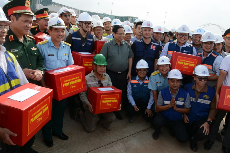 Nhân chuyến công tác tại Cảng hàng không quốc tế Long Thành, đồng chí Phạm Minh Chính, Ủy viên Bộ Chính trị, Thủ tướng Chính phủ và Thượng tướng Vũ Hải Sản, Ủy viên Trung ương Đảng, Thứ trưởng Bộ Quốc phòng đã đến thăm, động viên các đơn vị đang thực hiện nhiệm vụ tại đây.