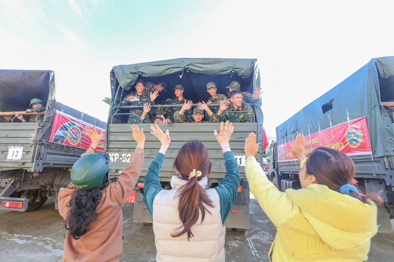 Người dân Lâm Đồng lưu luyến chia tay bộ đội hoàn thành nhiệm vụ giúp dân khắc phục hậu quả mưa lũ trở về đơn vị.