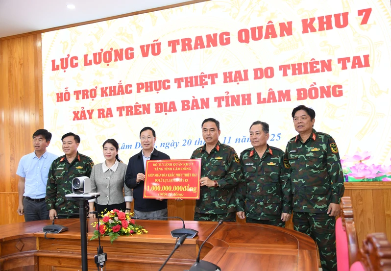 Trong hành trình 80 năm xây dựng, chiến đấu và trưởng thành của LLVT Quân khu 7, quân và dân trên mảnh đất Lâm Đồng đã có nhiều đóng góp quan trọng trong chiến đấu, tiếp sức, chở che, đùm bọc LLVT Quân khu. Và càng trong gian khó luôn có bộ đội, minh chứng cho việc làm đó, trước diễn biến phức tạp của mưa lũ ở Lâm Đồng, Quân khu 7 đã thành lập Sở chỉ huy phía trước do Đại tá Lê Xuân Bình, Phó Tư lệnh, Tham mưu trưởng Quân khu trực tiếp chỉ đạo. Ngoài lực lượng của Bộ CHQS tỉnh Lâm Đồng, cán bộ chiến sĩ các đơn vị chủ lực của Quân khu gồm: Sư đoàn 302, Lữ đoàn 25, Lữ đoàn 657, bộ đội thông tin, quân y, phòng hoá… hành quân xuyên đêm từ miền Đông cơ động nhanh, cùng với chính quyền địa phương kịp thời hỗ trợ người dân đến nơi an toàn, khắc phục hậu quả mưa lũ. Bộ Tư lệnh Quân khu đã hỗ trợ số tiền 1 tỷ đồng và hàng chục tấn hàng hóa. Từ những vùng rốn lũ của xã D’Ran, xã Cát Tiên, trong nước lũ, khu vực sạt lở, những ngôi nhà bị sập chứa trong đó là bùn lầy, đá hộc, đinh, dao sắc nhọn. Nhưng cán bộ, chiến sĩ LLVT Quân khu 7 sẵn sàng lao xuống với tinh thần nước lũ rút ra thì bộ đội tiến vào, không một ai chùn bước.