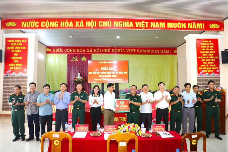 Thiếu tướng Trần Chí Tâm, Phó Chính ủy Quân khu và các cơ quan Quân khu, Bộ CHQS tỉnh Lâm Đồng tặng quà cấp ủy, chính quyền địa phương xã Quảng Trực, tỉnh Lâm Đồng.