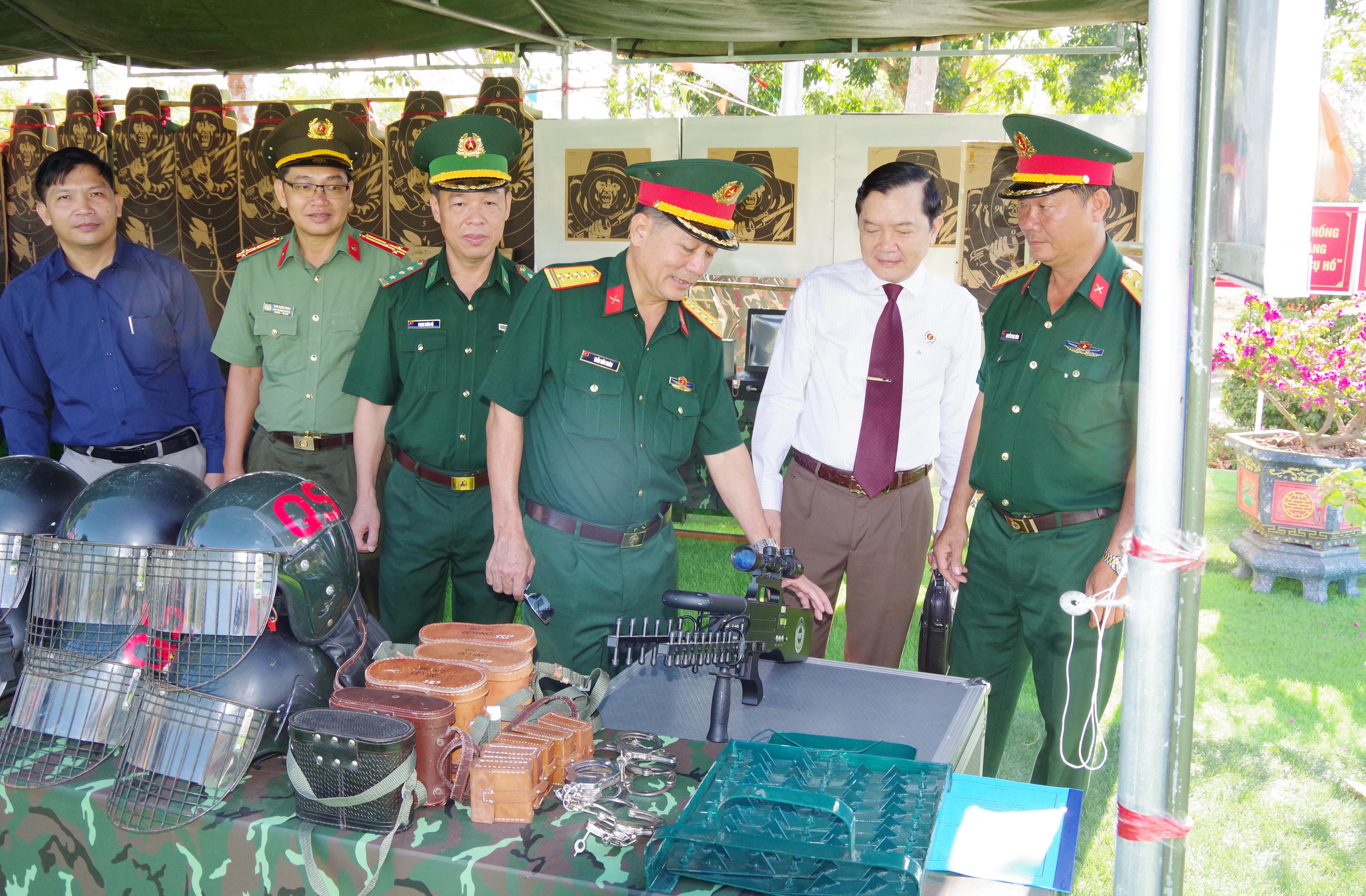 Các đại biểu tham quan sáng kiến, cải tiến kỹ thuật và mô hình học cụ, vật chất huấn luyện.