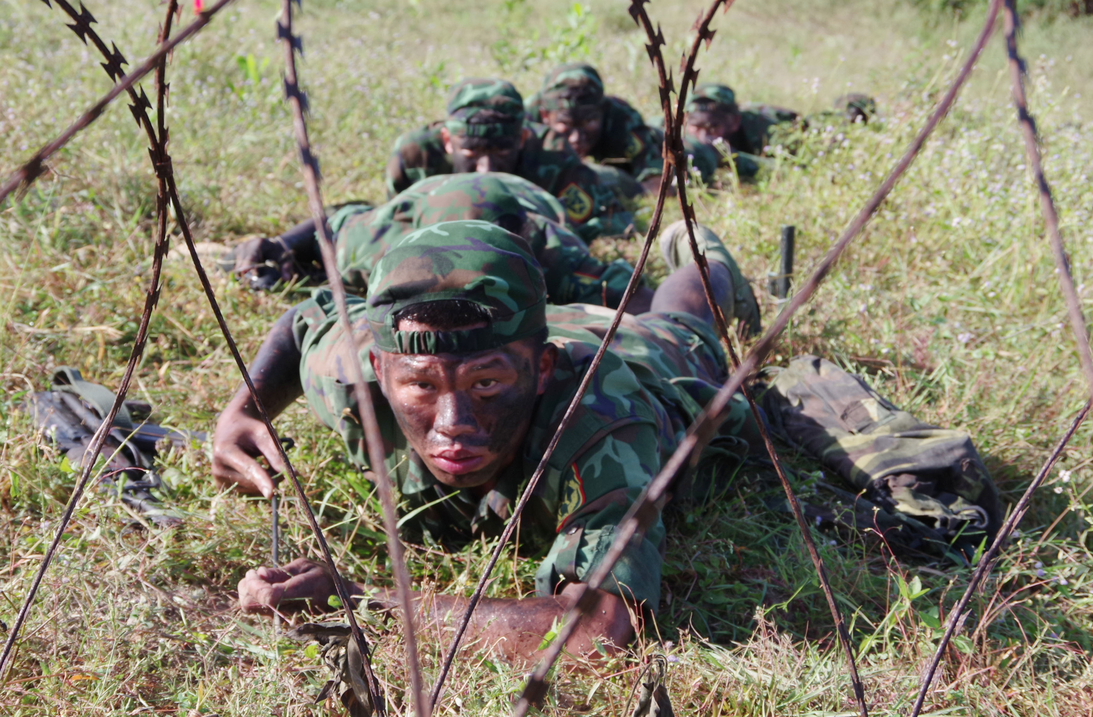 Chiến sĩ trinh sát huấn luyện khắc phục vật cản, tiềm nhập mục tiêu.