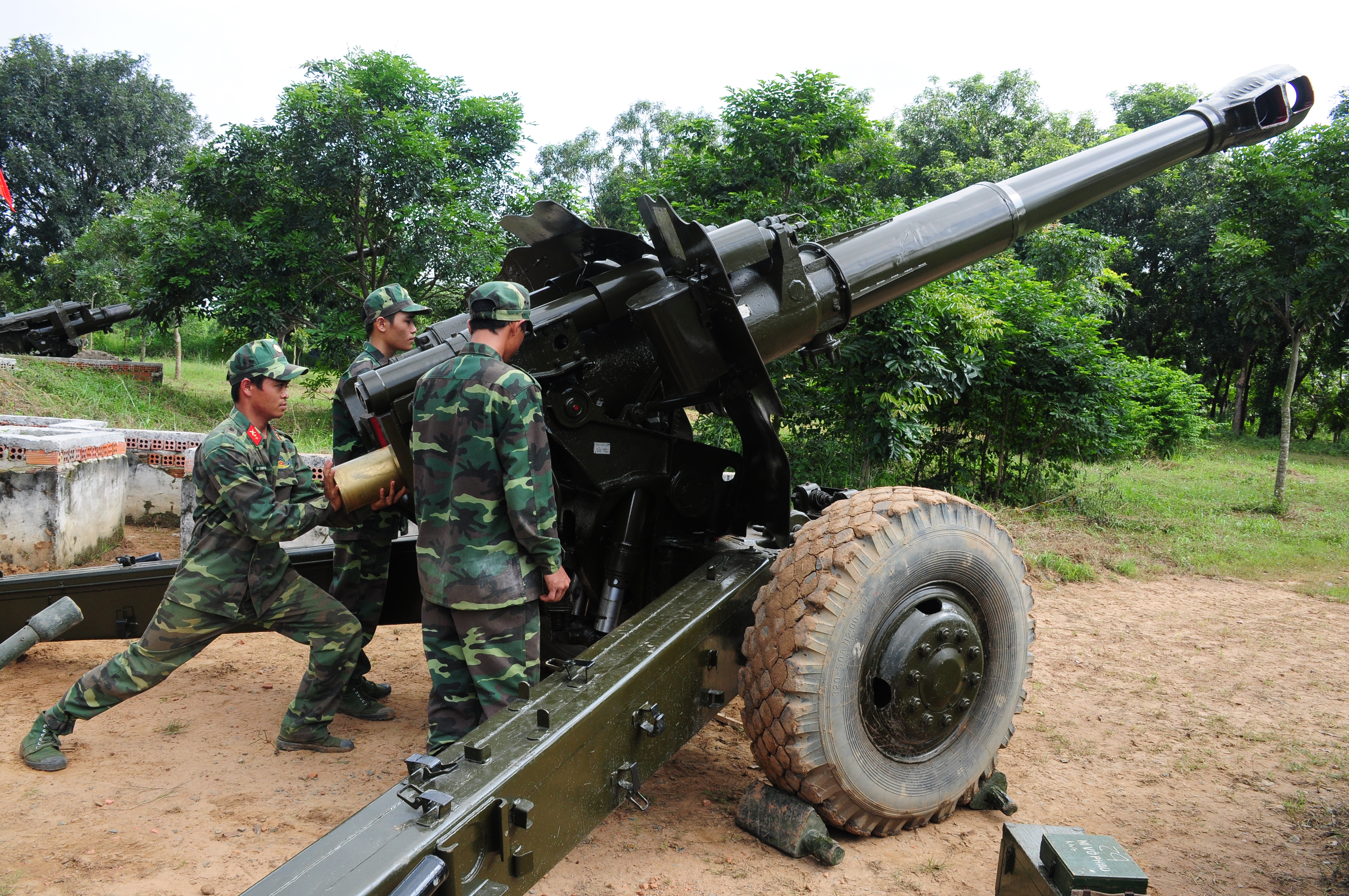 Đại tá Nguyễn Thanh Tài, Lữ đoàn trưởng Lữ đoàn Pháo binh 75 kiểm tra các khẩu đội trước khii bước vào diễn tập bắn đạn thật