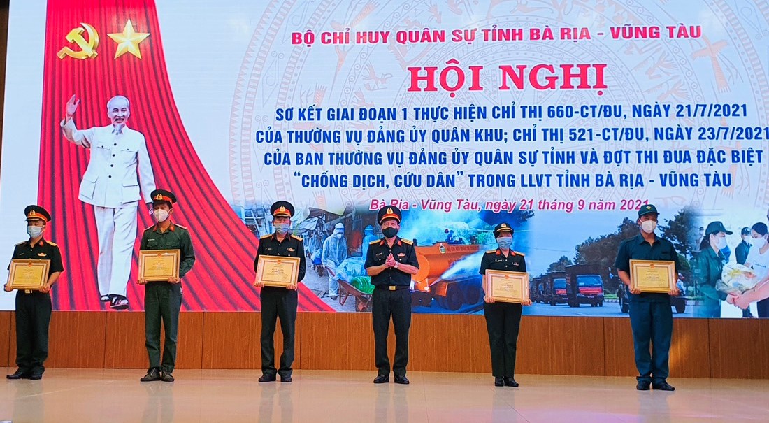 Nhân dịp này, Bộ CHQS tỉnh tặng giấy khen cho 13 tập thể và 46 cá nhân có thành tích xuất sắc trong công tác phòng, chống dịch Covid-19 trên địa bàn tỉnh.
