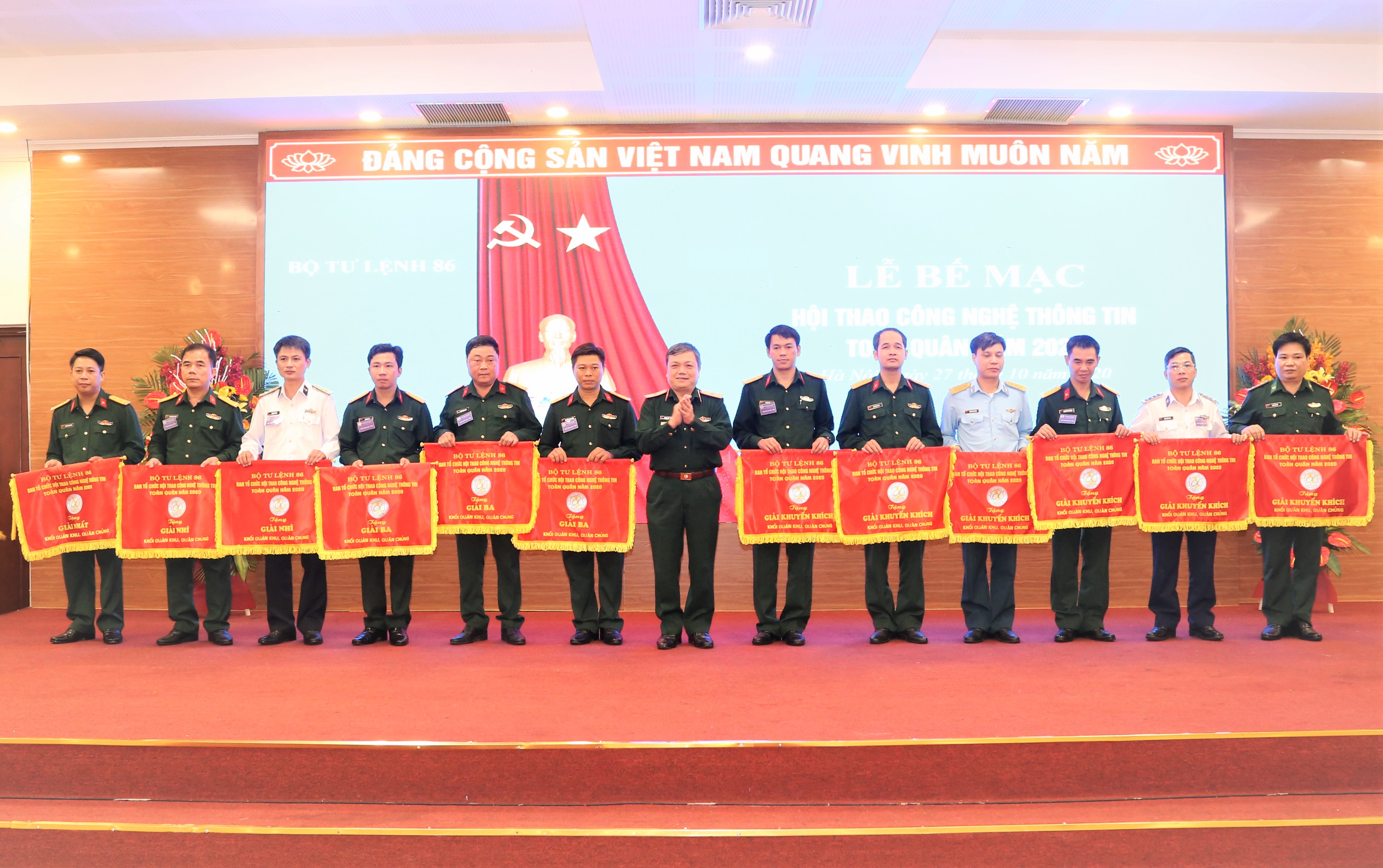 Trung tướng Đinh Thế Cường, Tư lệnh Bộ Tư lệnh 86 trao cờ các giải toàn đoàn hội thao CNTT toàn quân.