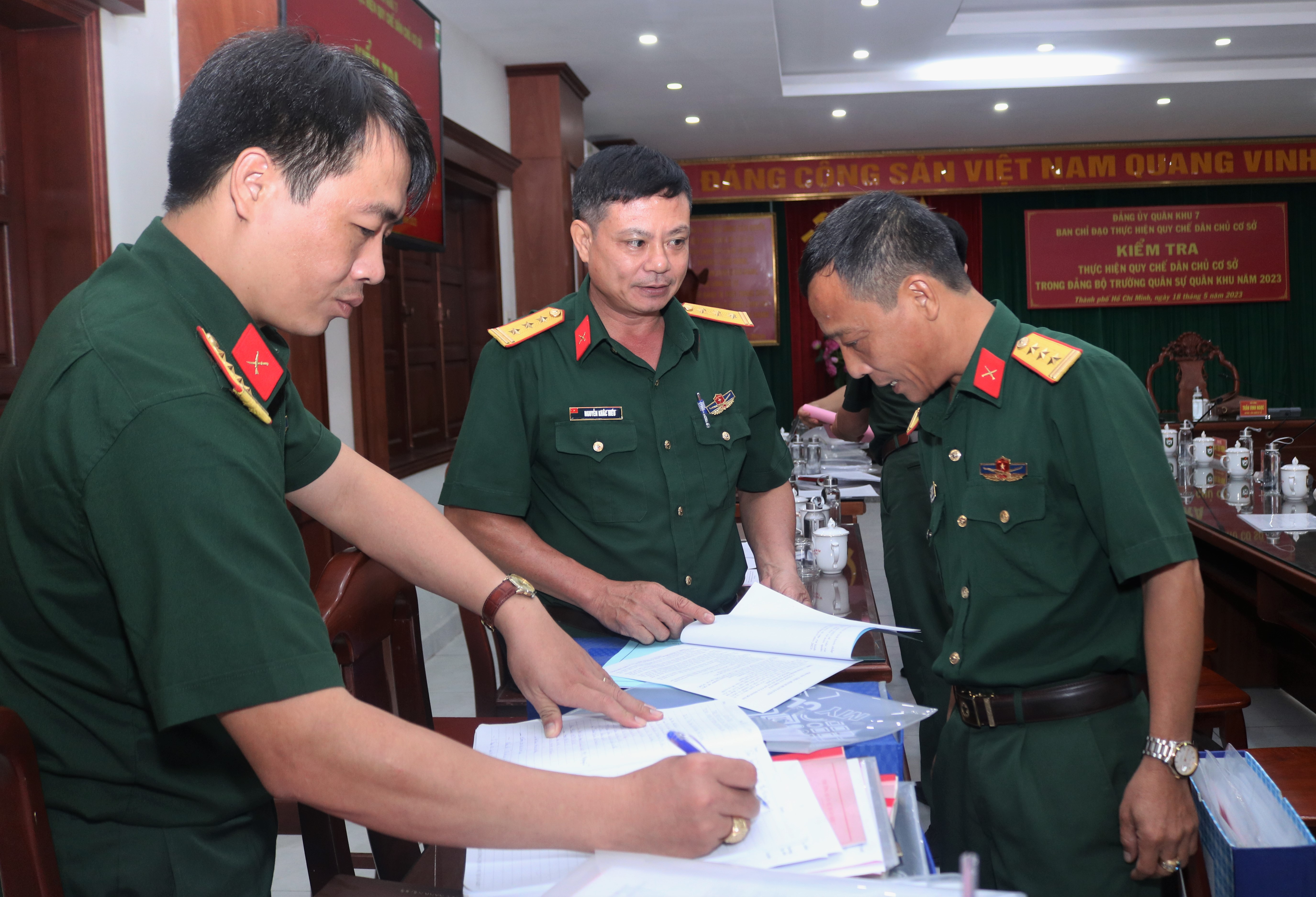 (QK7 Online) – Ngày 18-5, Đoàn công tác Ban chỉ đạo thực hiện Quy chế dân chủ cơ sở (QCDCCS) Đảng ủy Quân khu 7 do Thiếu tướng Trần Vinh Ngọc, Ủy viên Thường vụ Đảng ủy, Phó Chính ủy Quân khu, Trưởng Ban chỉ đạo thực hiện QCDCCS Đảng ủy Quân khu làm trưởng đoàn đến kiểm tra thực hiện QCDCCS trong Đảng bộ Trường Quân sự Quân khu năm 2023.