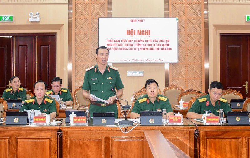 (QK7 Online) – Ngày 29/4, Quân khu 7 tổ chức hội nghị triển khai thực hiện Chương trình xóa nhà tạm, nhà dột nát cho đối tượng là con đẻ của người hoạt động kháng chiến bị nhiễm chất độc hóa học. Thiếu tướng Trần Chí Tâm, Ủy viên Ban Thường vụ Đảng ủy, Phó Chính ủy Quân khu chủ trì hội nghị. Dự hội nghị có thủ trưởng Bộ Tham mưu, Cục Chính trị, Cục Hậu cần – Kỹ thuật; Chỉ huy các cơ quan, đơn vị trong LLVT Quân khu.