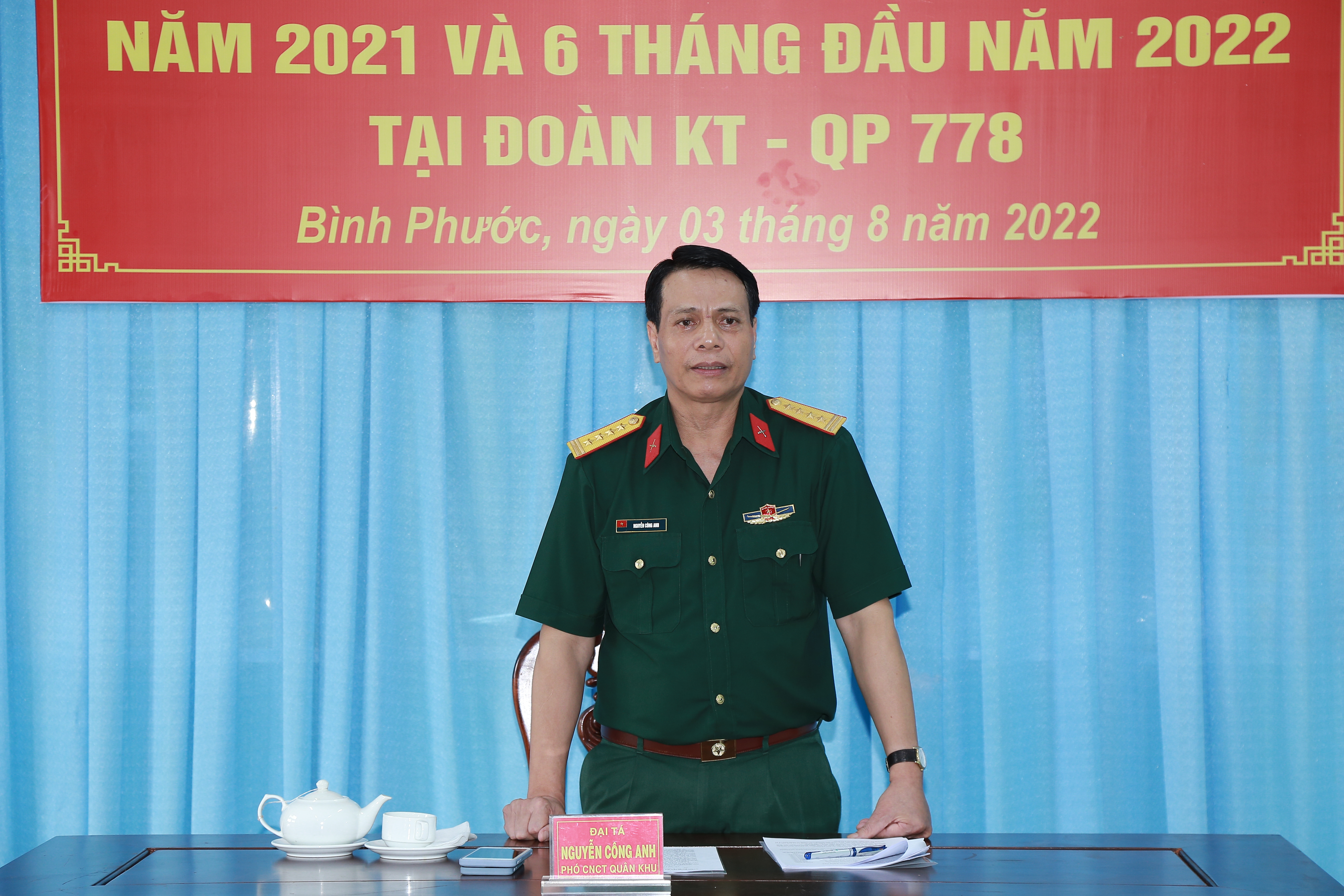 Phát biểu kết luận kiểm tra, Đại tá Nguyễn Công Anh, Phó Chủ nhiệm Chính trị Quân khu biểu dương những thành tích, kết quả của Đoàn KTQP 778 đạt được trong năm 2021 và những tháng đầu năm 2022. Đồng thời yêu cầu Đảng ủy Đoàn KTQP 778 cần tiếp tục quán triệt, triển khai thực hiện nghiêm các nghị quyết, chỉ thị, quy chế, quy định, hướng dẫn của trên về xây dựng và thực hiện QCDCCS; chỉ đạo các tổ chức đảng rà soát, bổ sung, hoàn chỉnh hệ thống các quy chế, quy định bảo đảm chặt chẽ, đúng thẩm quyền.