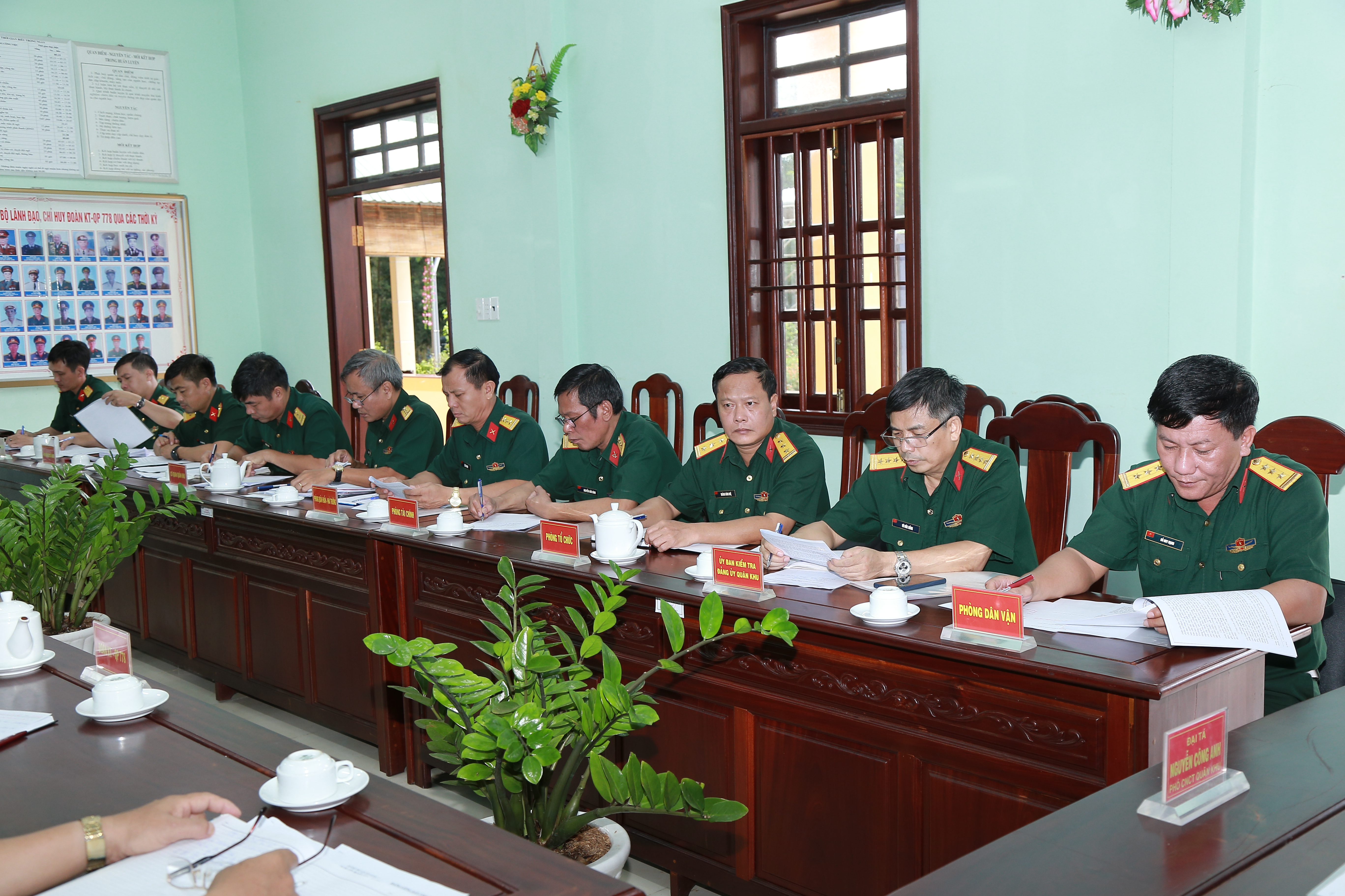 Thành viên đoàn kiểm tra lắng nghe những kết quả đạt được của Đoàn KTQP 778 trong thời gian qua.